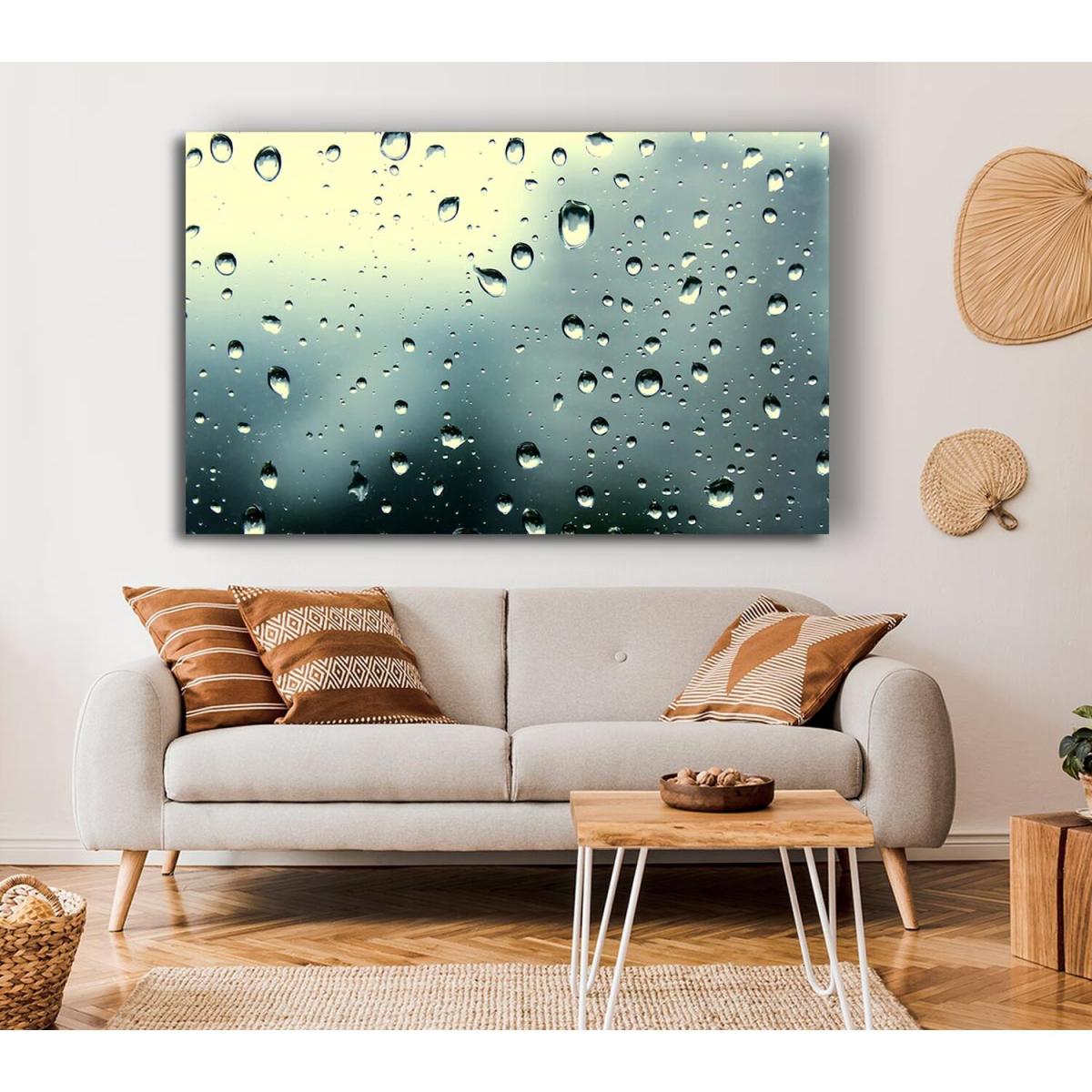 Rain Drops At Dusk Canvas Print Wall Art - Yellow / 101.6cm