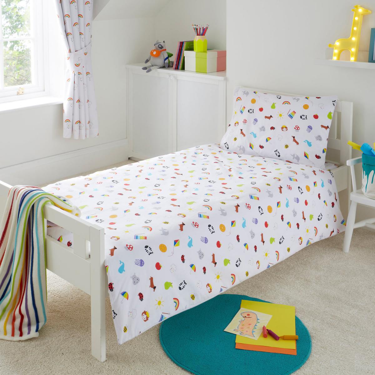 Rainbow 100% Cotton Cot Bed Duvet Cover and Pillowcase Set White