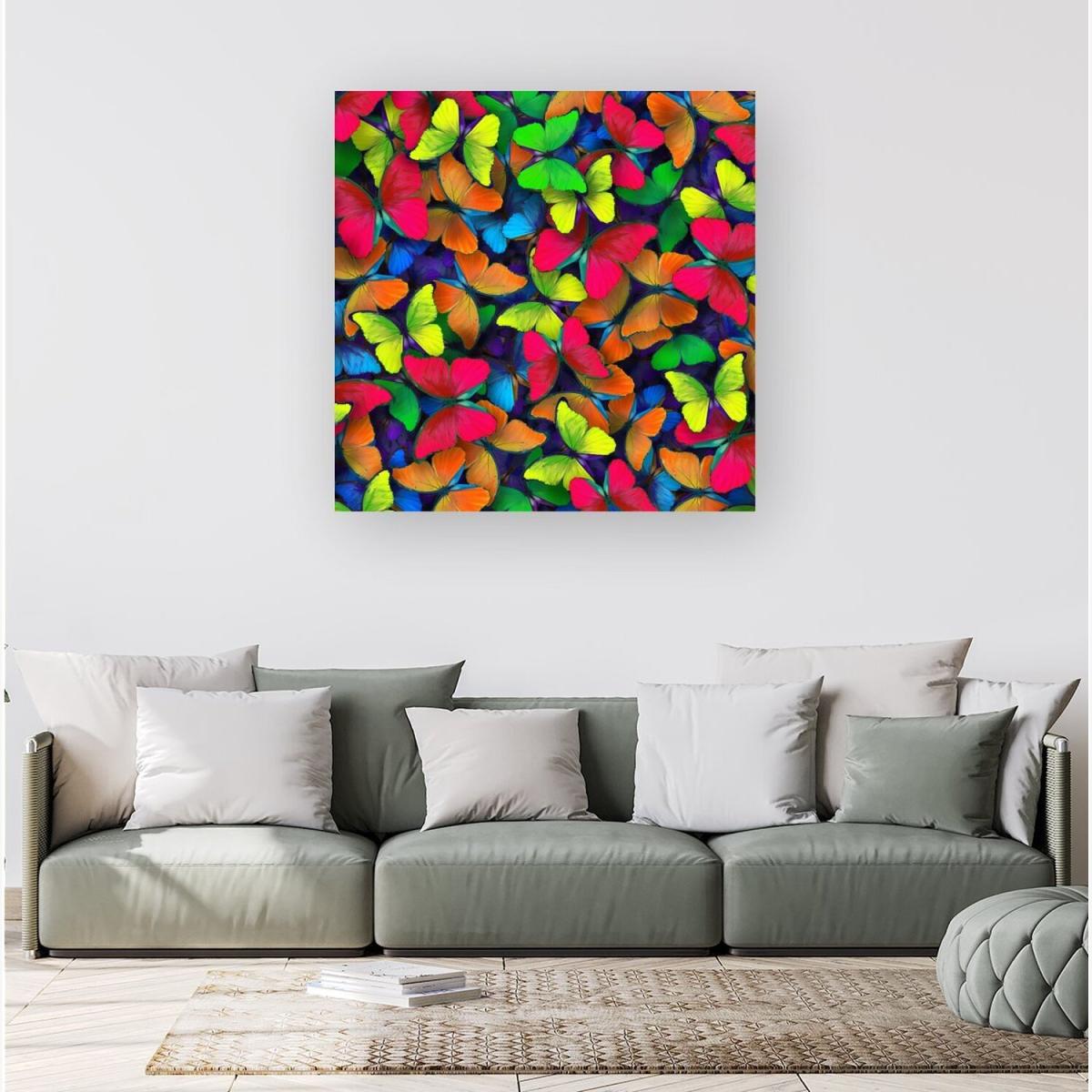 I love this vibrant butterfly canvas for adding a pop of colour and energy to a room. It works particularly well in modern, minimalist interiors where it can serve as a focal point, or in playful, eclectic spaces that embrace bold patterns. To style it effectively, consider pairing it with neutral furnishings, like a grey or beige sofa, to let the artwork stand out. Practical tips include hanging it at eye level for maximum visual impact and grouping it with other colourful accessories or smaller artworks to create a curated gallery wall. This piece is ideal for lively living rooms, bedrooms, or even a creative workspace where a dose of colour can inspire and invigorate.
