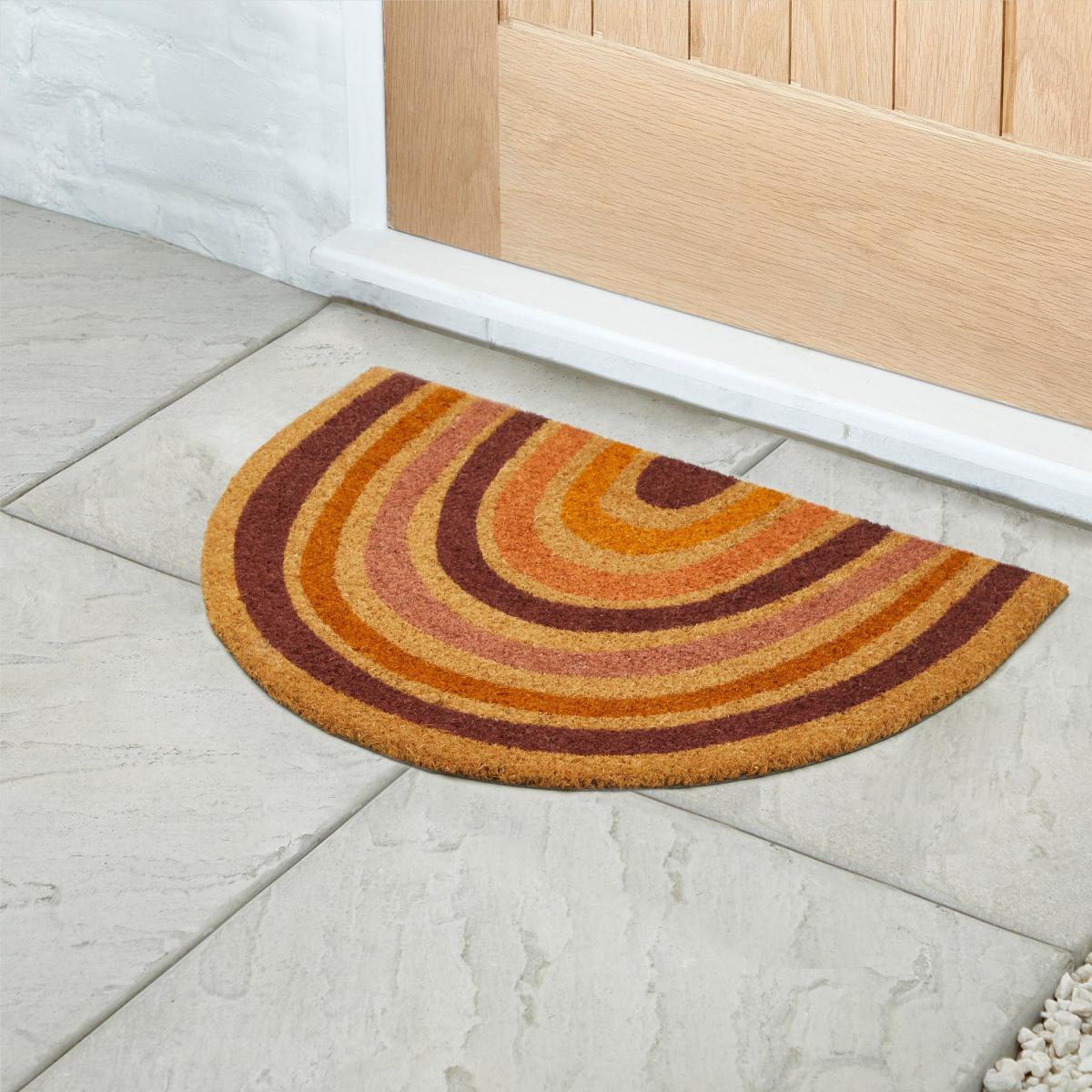 I love this half-moon doormat for its cheerful colour palette and bold striped pattern, which can add a lively touch to both modern and traditional entrances. It works particularly well in neutral or minimalist interiors, providing a pop of colour without overwhelming the space. Practical styling tips include pairing it with natural wood or monochrome doors to let the colours stand out, and layering with a larger, neutral mat for a cosy, welcoming feel. Its durable construction makes it ideal for busy hallways or porch areas, and the bright hues can help hide dirt, keeping your entryway looking fresh and inviting.