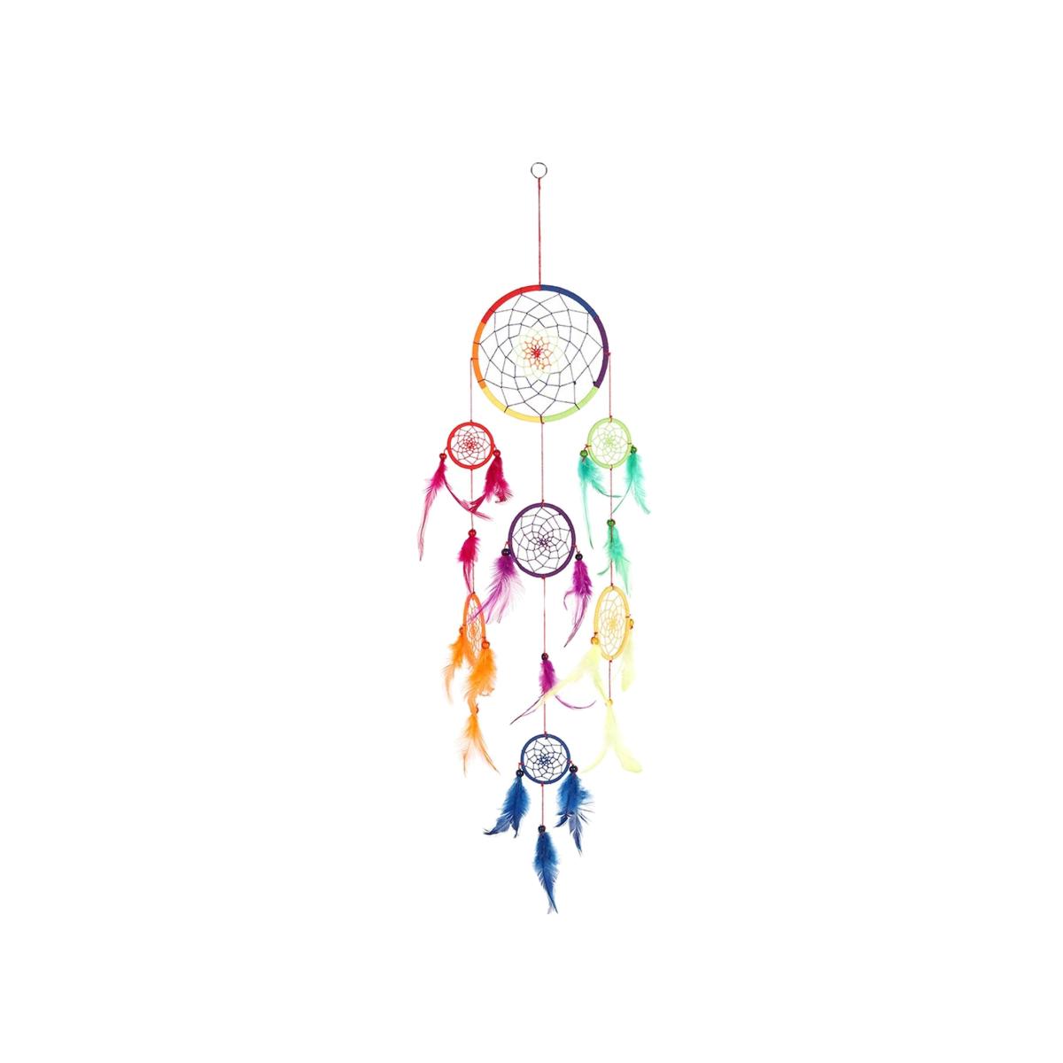 This vibrant colourful dreamcatcher is perfect to hang over a bed, it also gives a bedroom a pop of colour. The intricately woven string replicates the web of a spider. Dreamcatchers are traditional Native American art forms typically hung over cradles or beds for protection