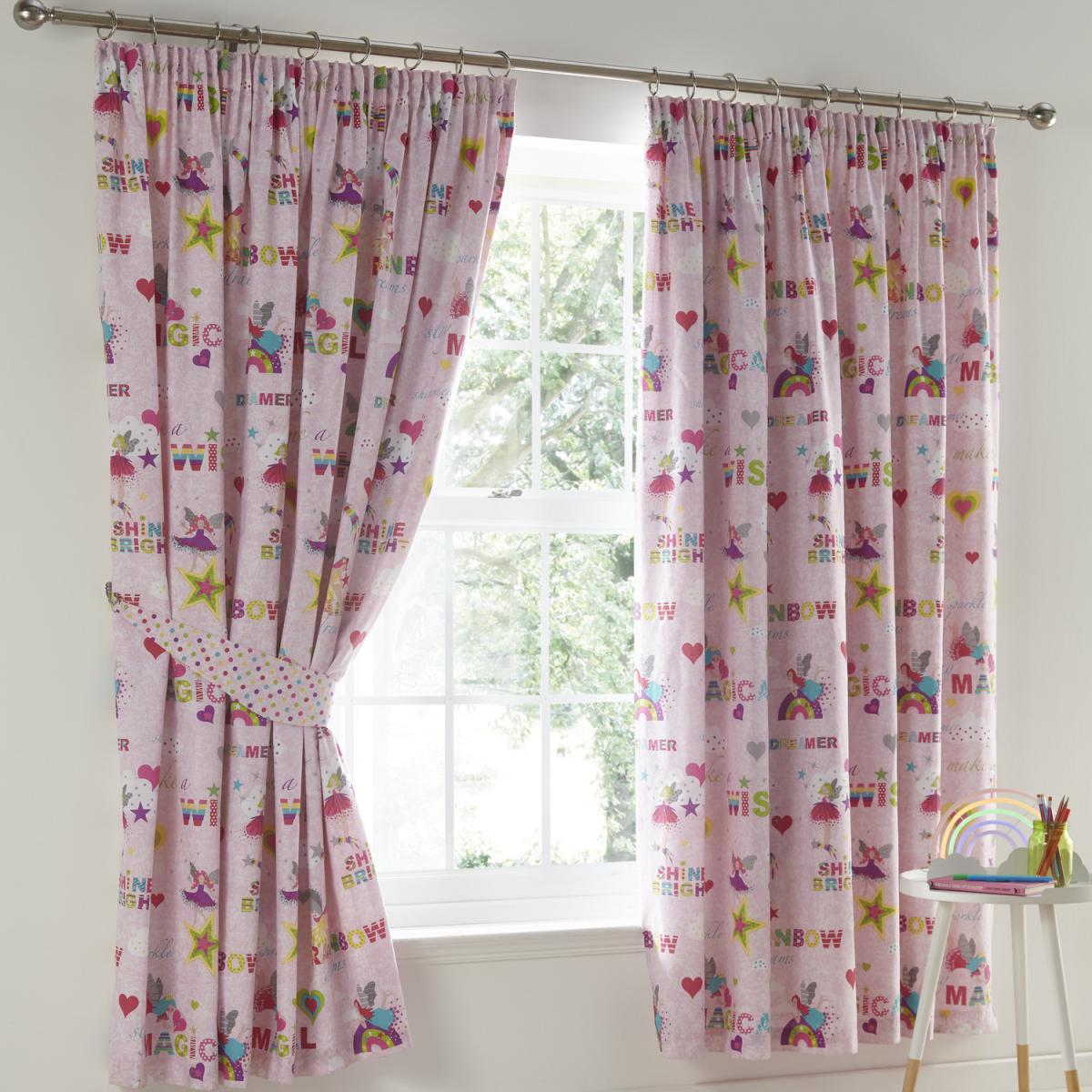 Rainbow Fairies Pencil Pleat Lined Curtains - Pink / 54cm