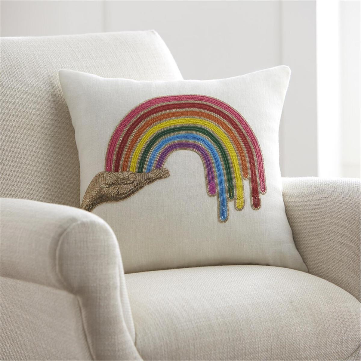 Add the ultimate pop of colour to your home with this Rainbow cushion from Jonathan Adler. Intricately beaded by hand, this cushion displays a dazzling rainbow design on a cream background. The perfect piece for perking up your pillowscape, each cushion takes nearly 100 hours to create. A wonderful accessory to brighten your interior.