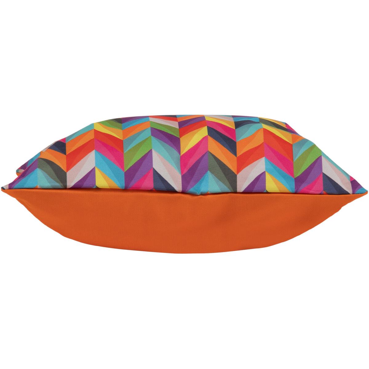Instantly uplift your decor with this vibrant cushion. Its dazzling design is a great way to refresh and renew your space. Filled with a plump hollow fibre, this comfortable geometric-inspired cushion is perfect for adding a decorative touch to your furniture. Ideal for indoor and outdoor use, this patterned cushion is designed with 100 waterproof fabrics. Extend its life by simply wiping clean any spillages and storing them in a cool, dry place indoors - ready to bring outside when the warmer weather arrives on fresh spring and bright summer days.