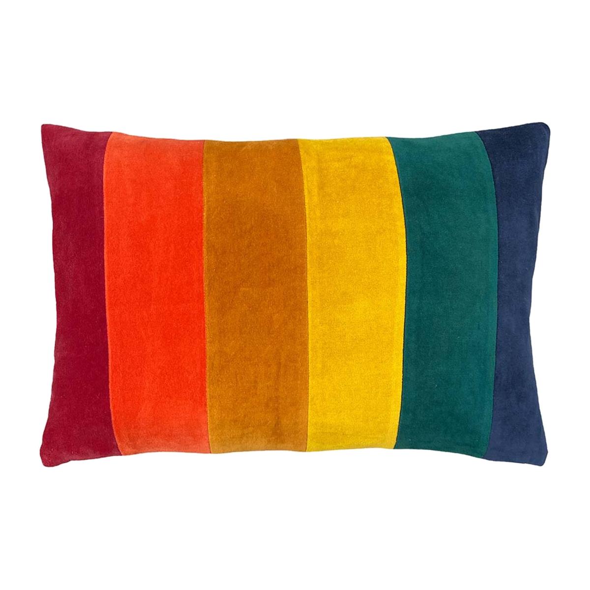 Make a statement with the Rainbow cushion. A rich jewel colour palette in a striped Rainbow design, the perfect addition for a pop of colour in your home.