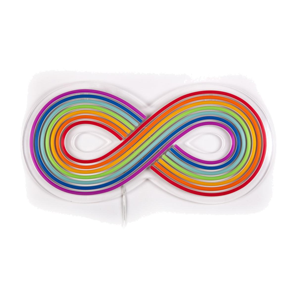 Set your walls buzzing with this Las Vegas-style kitsch retro wall light! The Rainbow wall light is perfect for creating a very trendy "arty" atmosphere. It consists of a row of colored silicone tubes placed behind an acrylic panel. The coloured tubes form a geometric pattern with hypnotic curves. The Rainbow wall lamp diffuses subdued ambient light. It comes with a cable with a mains electric plug. A switch is located on the cable.
