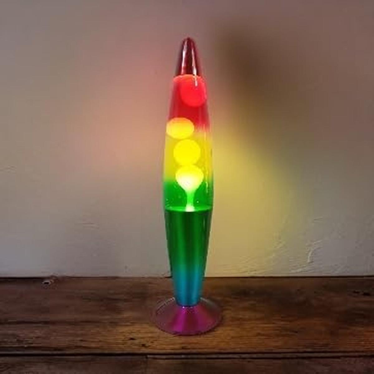 Create an upbeat atmosphere anytime with our 16 inch Motion Wax Lamp. With its warm light and welcoming glow, this beautiful Motion Volcano Lamp is sure to put anyone in a cheerful mood. The Stunning Wax Lamp is easy to use with an ON and Off switch and plugs in easily Place this fun Motion Lamp on your nightstand, desk or table and watch as it softly heats up and creates a swirling volcano motion display. Illuminate your space and mood with this mesmerising motion lamp featuring Wax movement. This retro-inspired design is perfect for desks, side tables and nightstands. Decorate your bedroom, dorm room office and more Features a gentle glow that is easy on the eyes and creates a relaxing atmosphere wherever you place it. The volcano lamp base and cap is made of metal while the body is made of heat resistant glass. Enjoy the relaxing colourful motion of this fun-sized version of the timeless lamp. Glass globe with aluminium base and cap plugs into a power outlet to provide a relaxing, soft light. Watch as the wax melts, flows and moves slowly around the glass globe. This lamp is an impressive 16 inches tall. This Motion lamp comes with a SES 25W screw-in bulb which provides the warming glow within the tube.