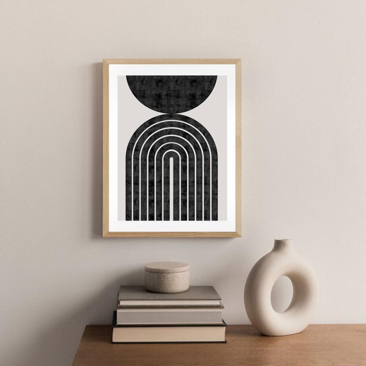 I love this rainbow minimalism piece for its clean, modern aesthetic and bold graphic design. It works particularly well in contemporary or Scandinavian-style interiors, where simplicity and subtle colour pops are key. The unframed format makes it versatile, allowing it to be paired with various framing options or hung as a standalone statement. For practical styling, consider positioning it above a neutral sofa or a simple console table to let the graphic pattern stand out. Pairing it with other geometric or monochrome accessories will help create a cohesive look without overwhelming the space. This piece is ideal for adding an artistic touch to minimalist settings or offices, where it can serve as both decor and a focal point.