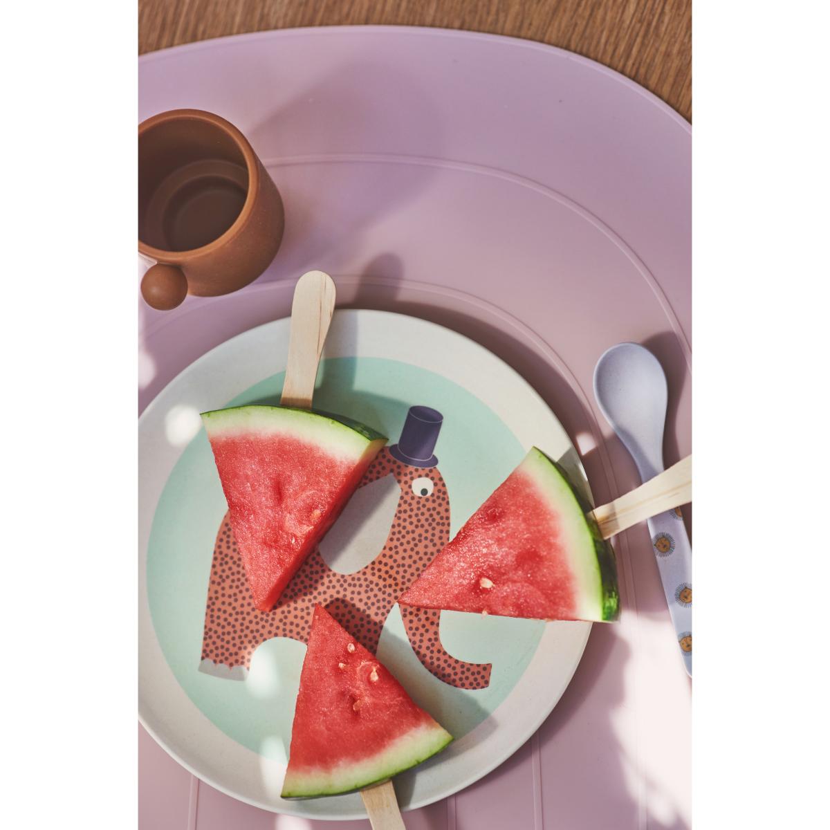 The Rainbow placemat from OYOY. This playful silicone placemat has been designed with an array of notches that form the shape of a rainbow. The sturdy yet flexible silicone ensures that the placemat stays firmly on the table all throughout the meal.