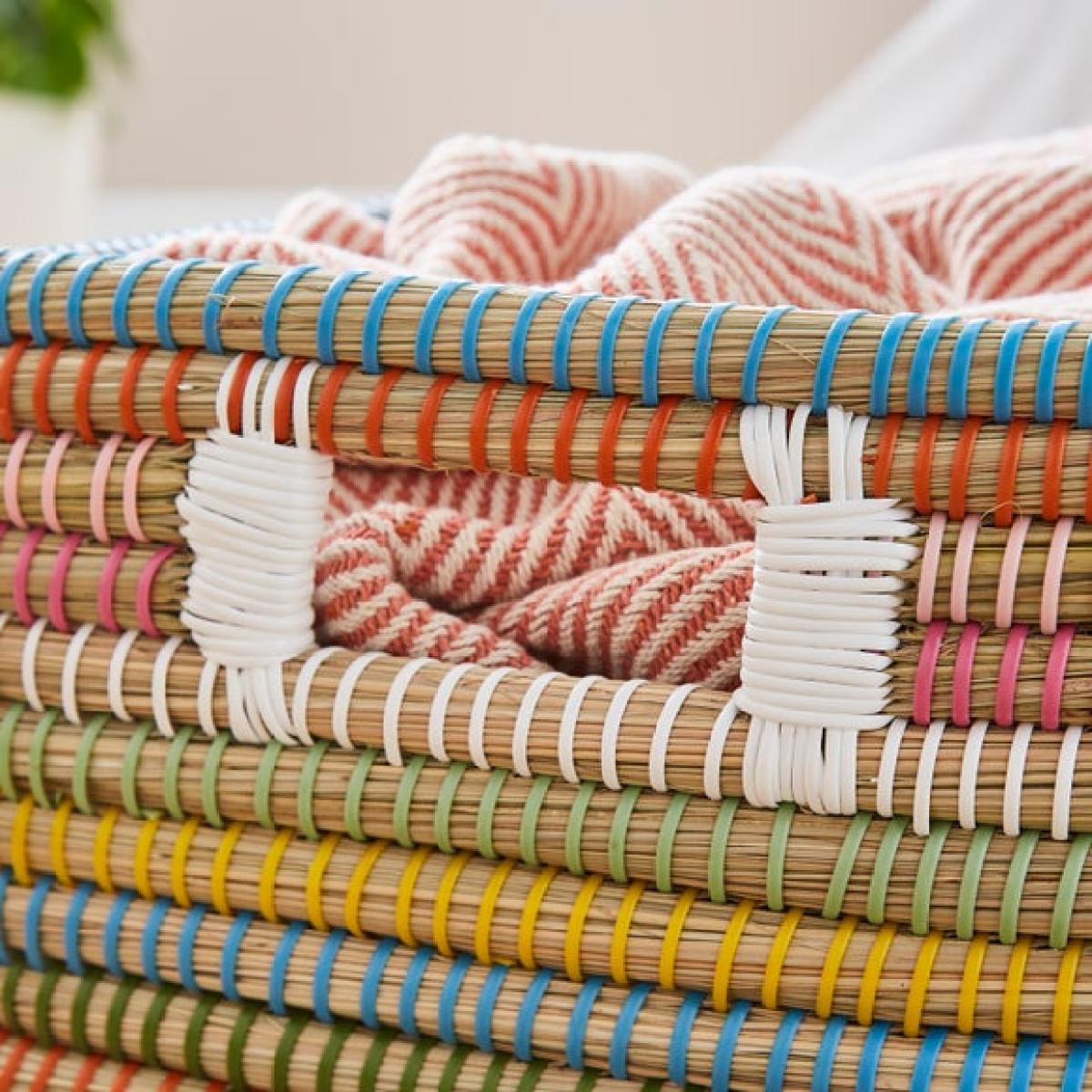 I love this rainbow basket for its playful pop of colour and practical design. It's great for adding a touch of brightness to storage areas like kids' rooms, playrooms, or even living spaces that could benefit from a cheerful organisational tweak. Its woven texture offers a tactile element, making it ideal for storing toys, crafts, or even bathroom essentials. Styling tips include grouping it with neutral or pastel-toned accessories for a fresh look, or using it as a statement piece on open shelving. It works well in both contemporary and rustic interiors, adding a colourful yet functional touch to your space.