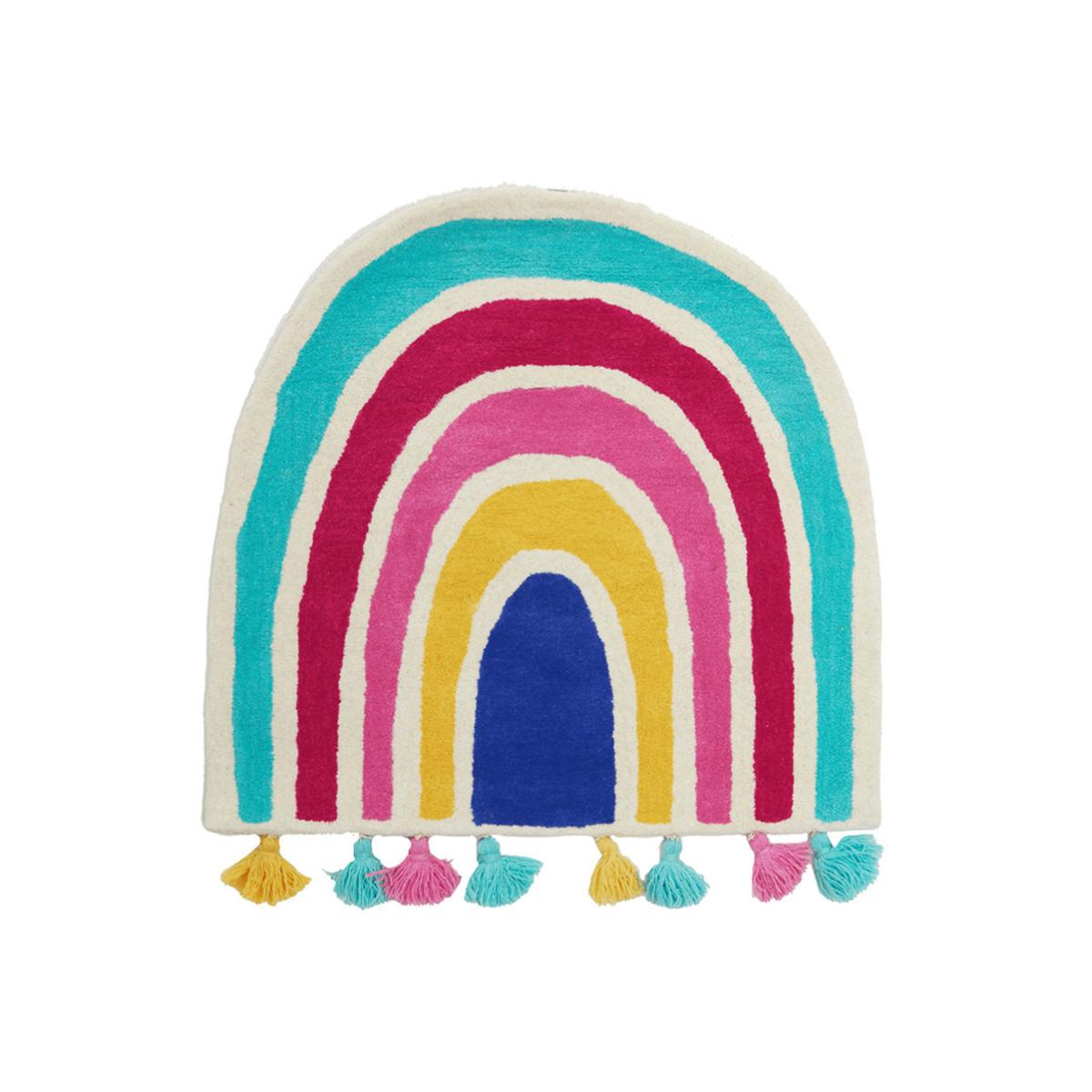 Somewhere over the rainbow is beautifully soft style with bright bursts of technicolour. Expertly hand-woven from premium quality fibre, this colourful rainbow rug finished with assorted tassels is perfect for your child's bedroom, providing a playful pop of vibrant fun to their space.