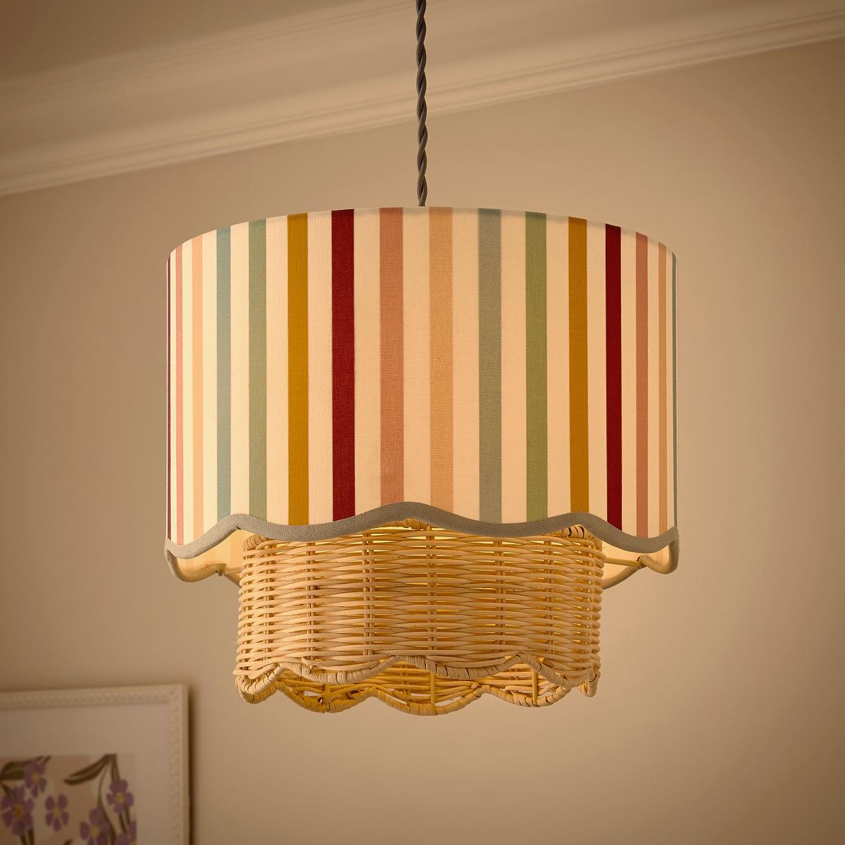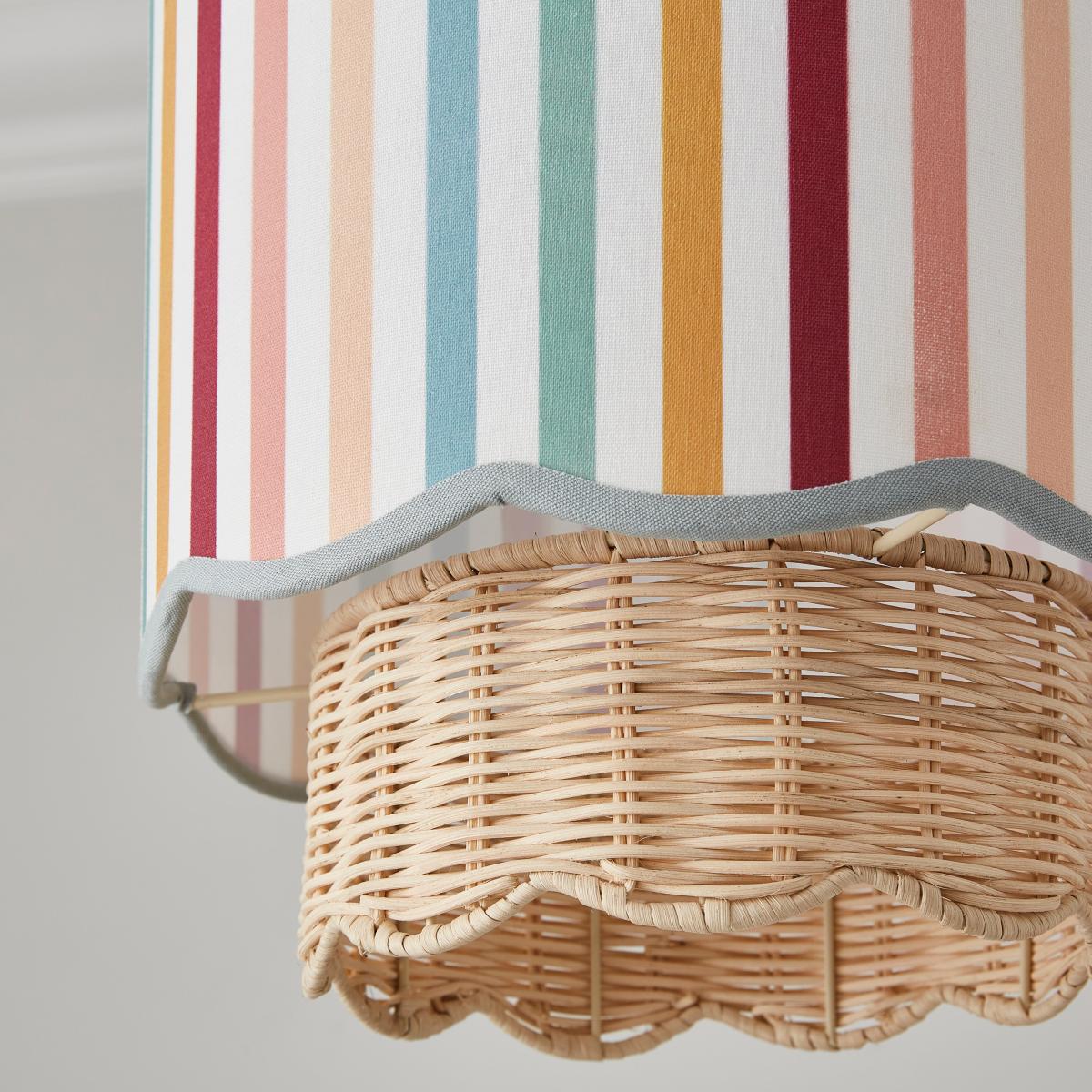 I love this playful but versatile pendant shade for adding a pop of colour and personality to a space. Its multicoloured stripes make it a great feature piece in a neutral or pastel-toned room, particularly in kitchens, dining areas, or children's spaces where a bit of fun is welcome. To style it effectively, consider pairing with simple, understated décor so it can stand out without competing with other patterns or bold furnishings. It also works well with natural textures, like wicker or wood, to enhance its casual, cheerful vibe. For a cohesive look, keep the rest of your lighting understated, so the shade remains the focal point.