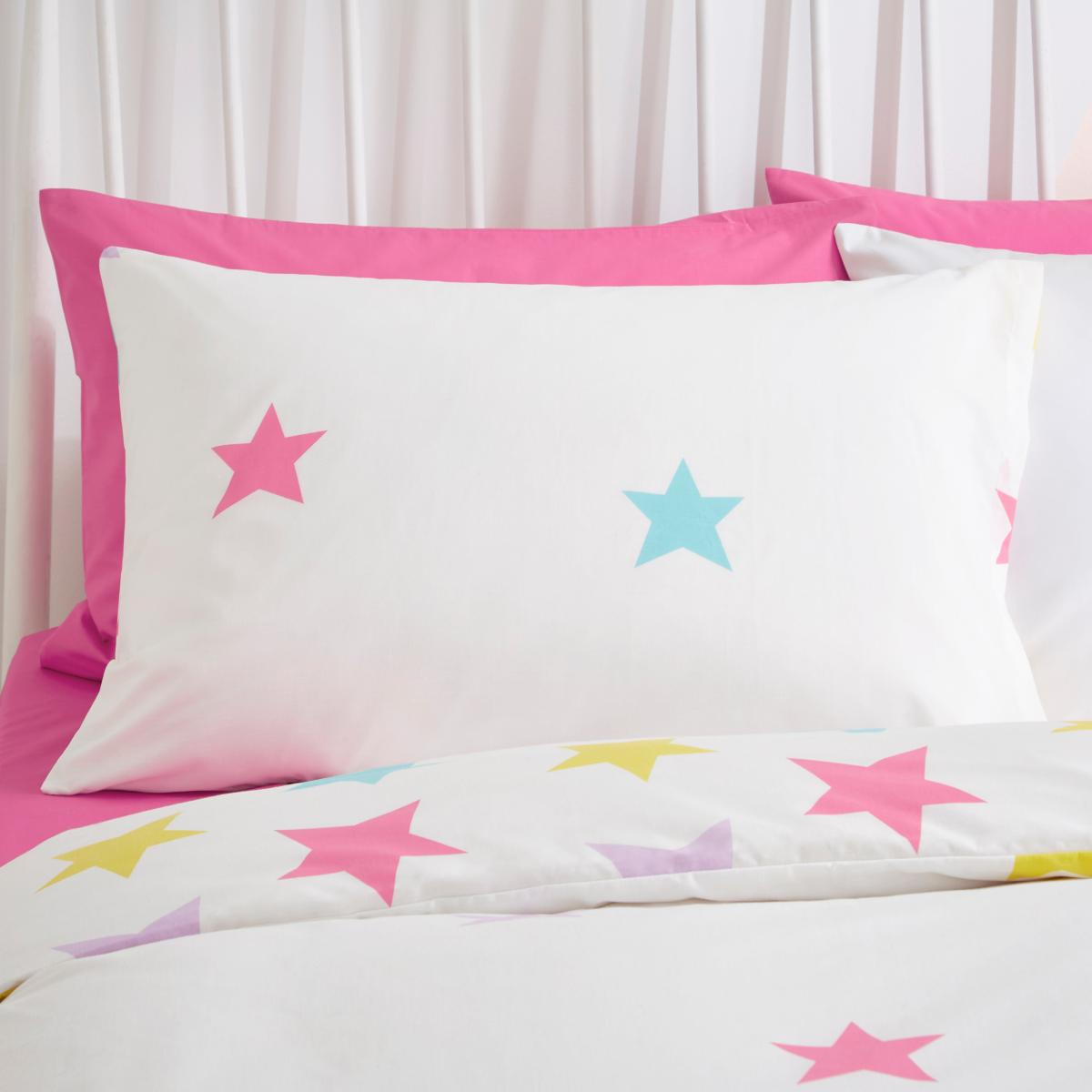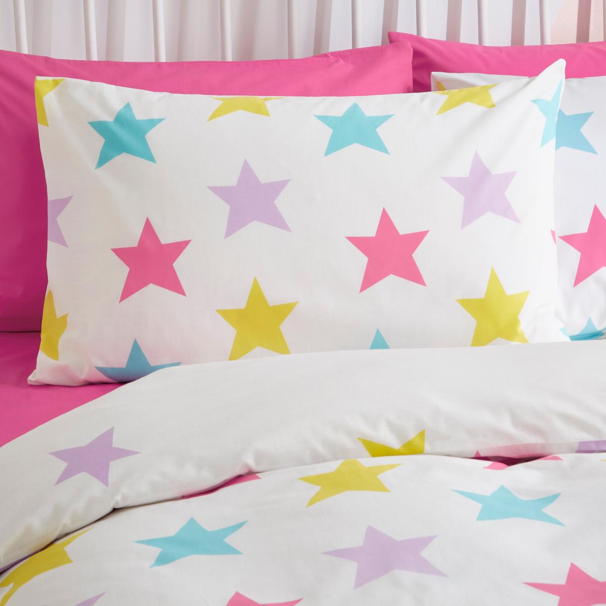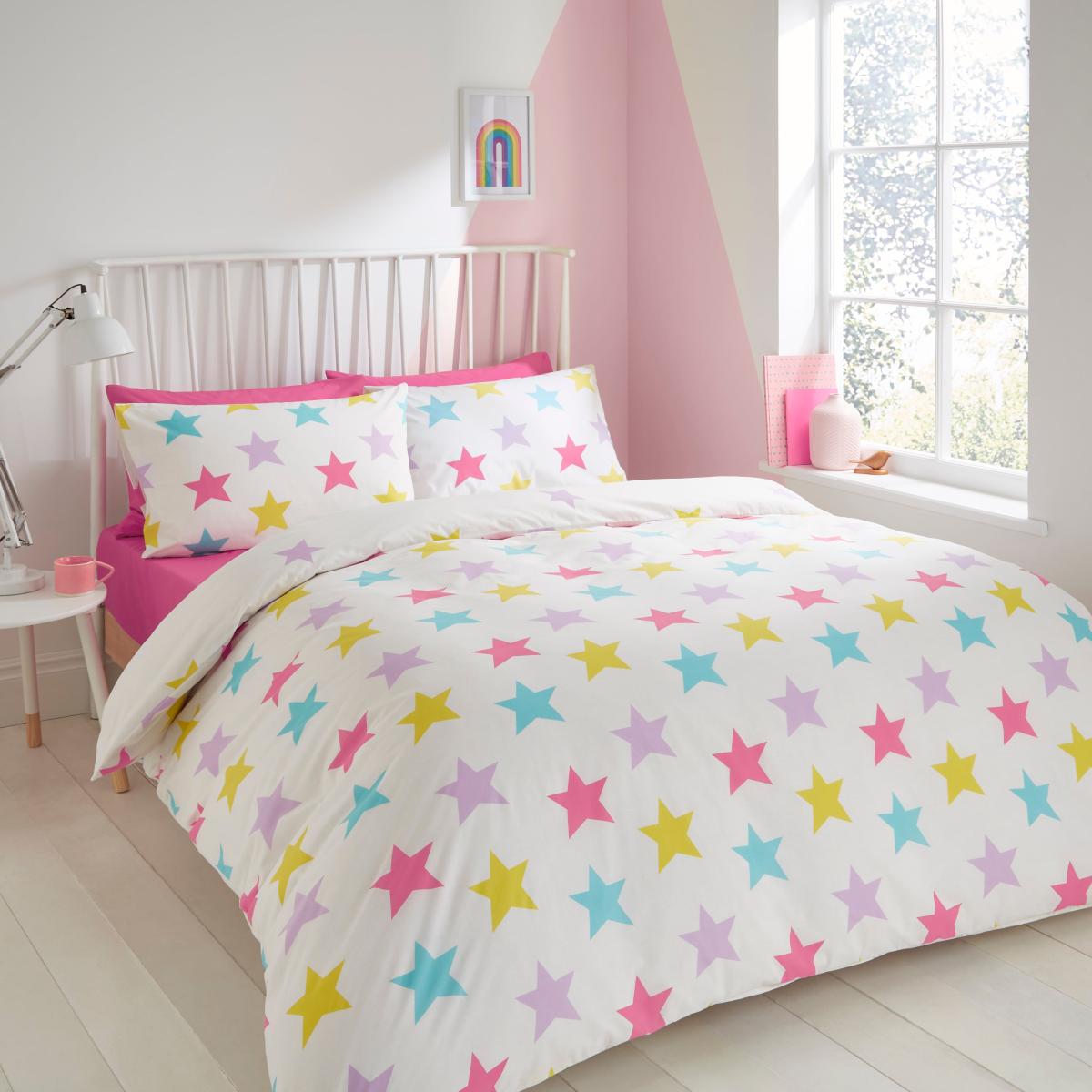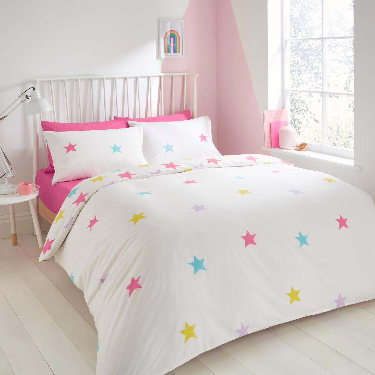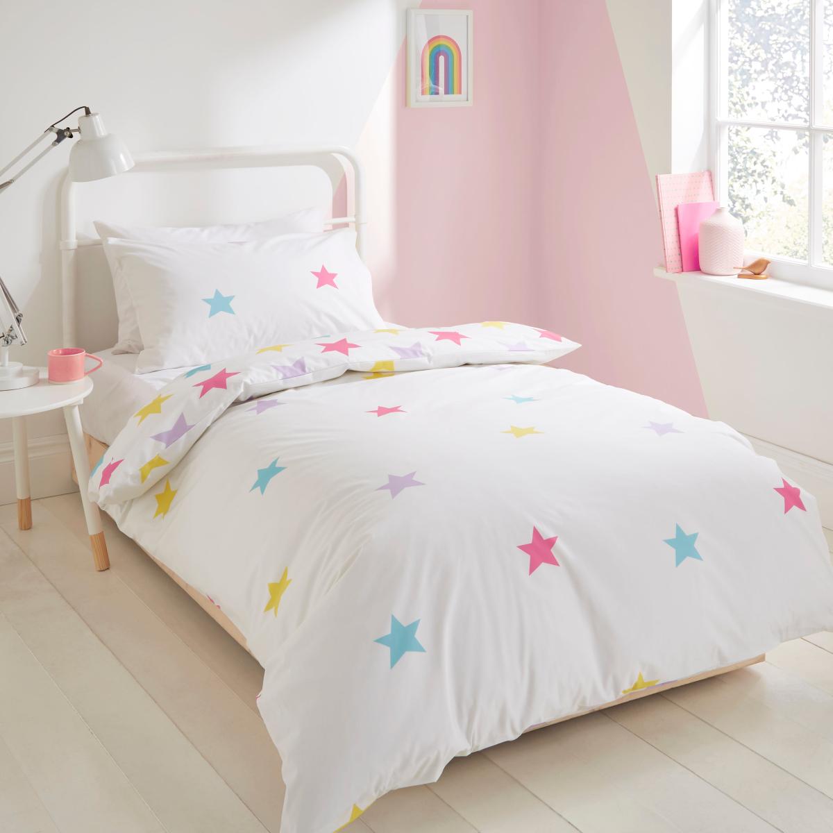 Rainbow Stars Reversible Duvet and Pillowcase Set White/Pink/Blue