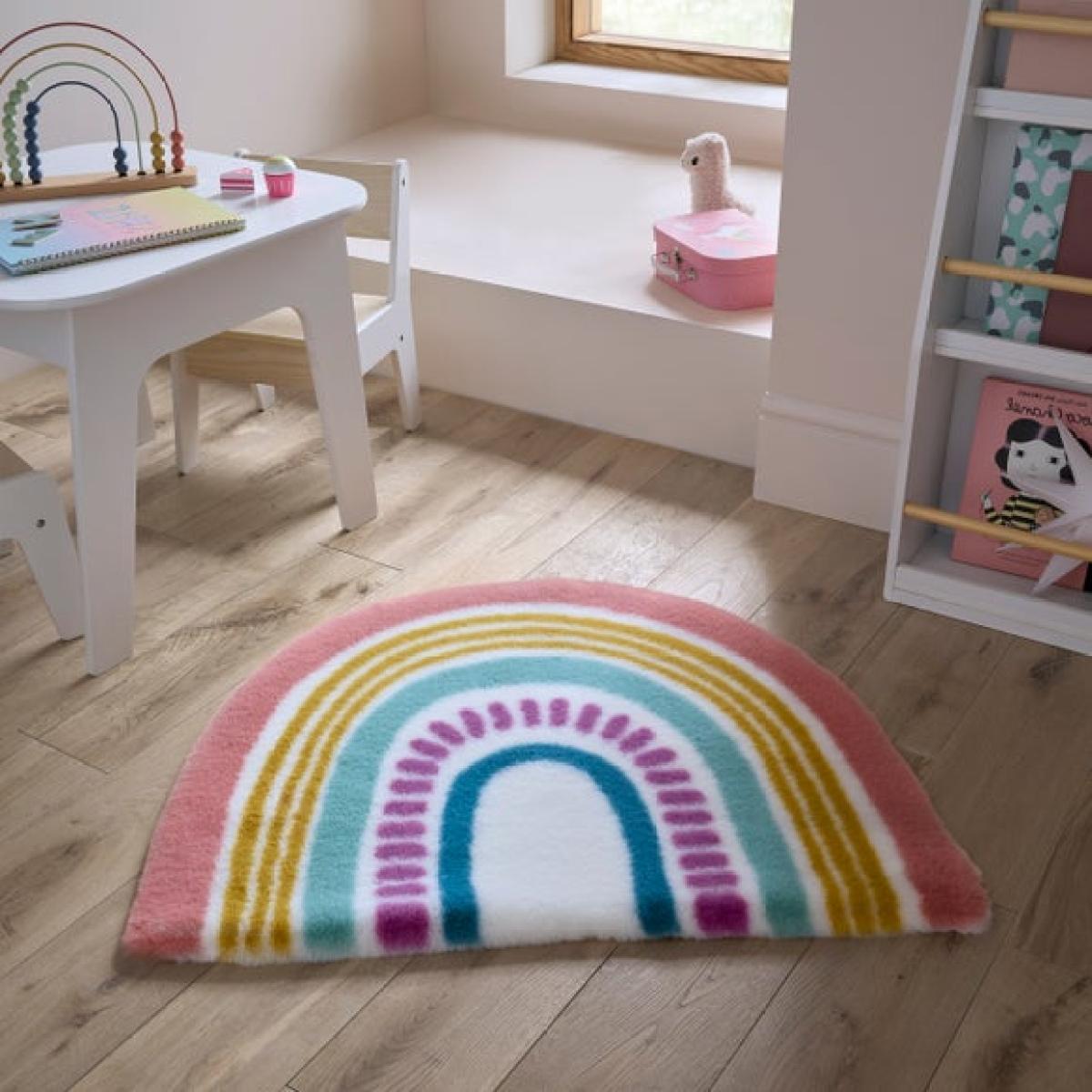 * Machine Washable * Supersoft Faux Fur Pile * Colourful Rainbow Design Brighten up a child’s room with the Rainbow Supersoft Faux Fur Shaped Washable Rug. Featuring a cheerful rainbow shape and a luxuriously supersoft faux fur pile, this rug brings colour, comfort, and fun to kids’ bedrooms, cosy reading nooks and nurseries. It’s also machine washable, making it as practical as it is playful – perfect for everyday messes, simply pop in the washing machine for a good as new look. Care Instructions: Shake or vacuum to remove and loosen fibres, dirt and debris using a nozzle attachment. In the case of spillage, blot with a clean cloth. Place into the washing machine on a gentle cycle at 30 degrees and air-dry flat. Due to the nature of cotton expect a small amount of shrinkage after washing. For best results lay flat and reshape as soon as possible. We recommend our small and medium size washable rugs up to 120 x 170 will fit most washing machines sizes between 8 - 10kg. Please check your manufacturer guidelines before washing and do not overload the drum. For Large and High pile washable rugs a laundrette service may be required.