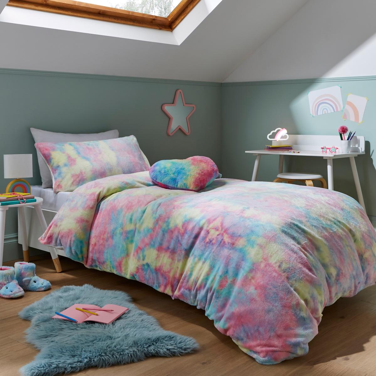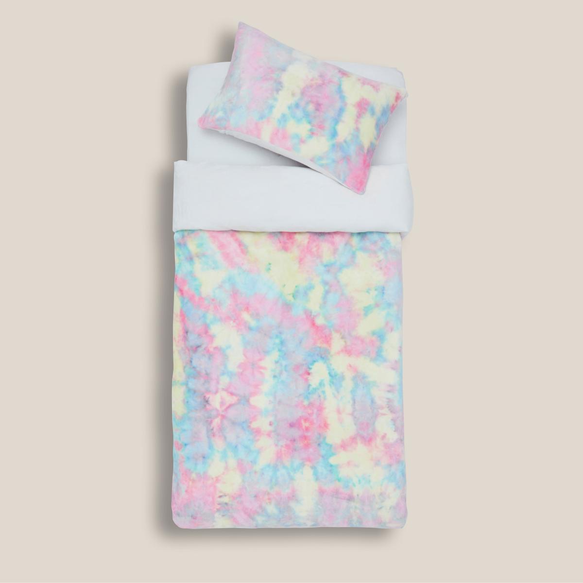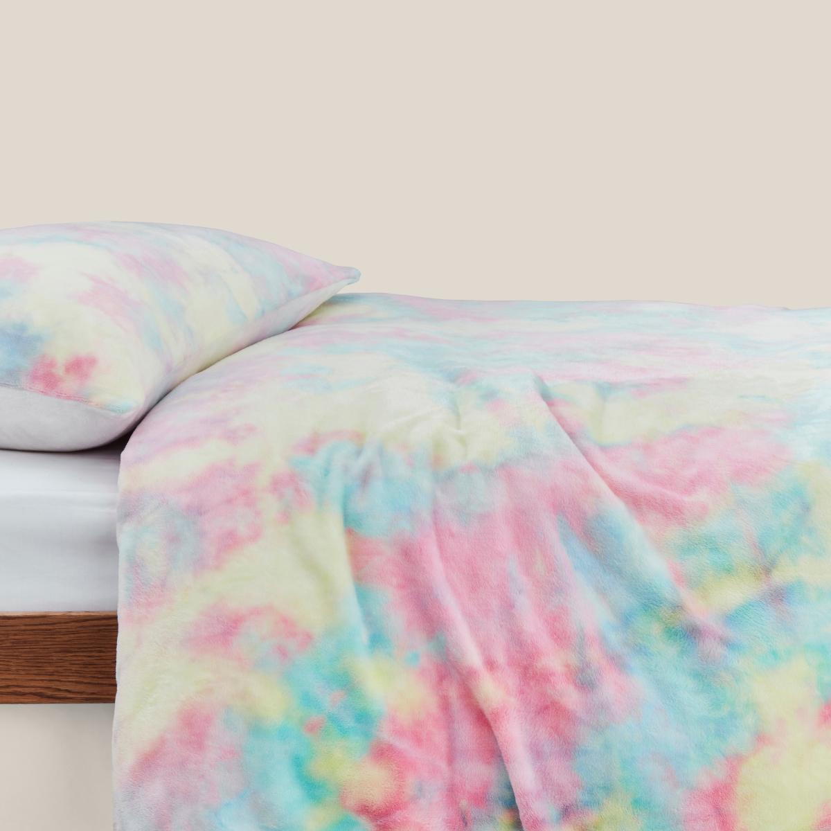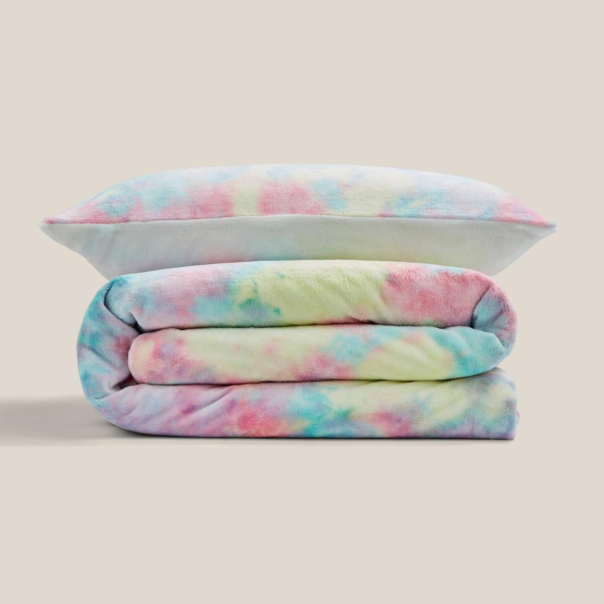 Rainbow Tie Dye Fleece Duvet Cover and Pillowcase Set MultiColoured