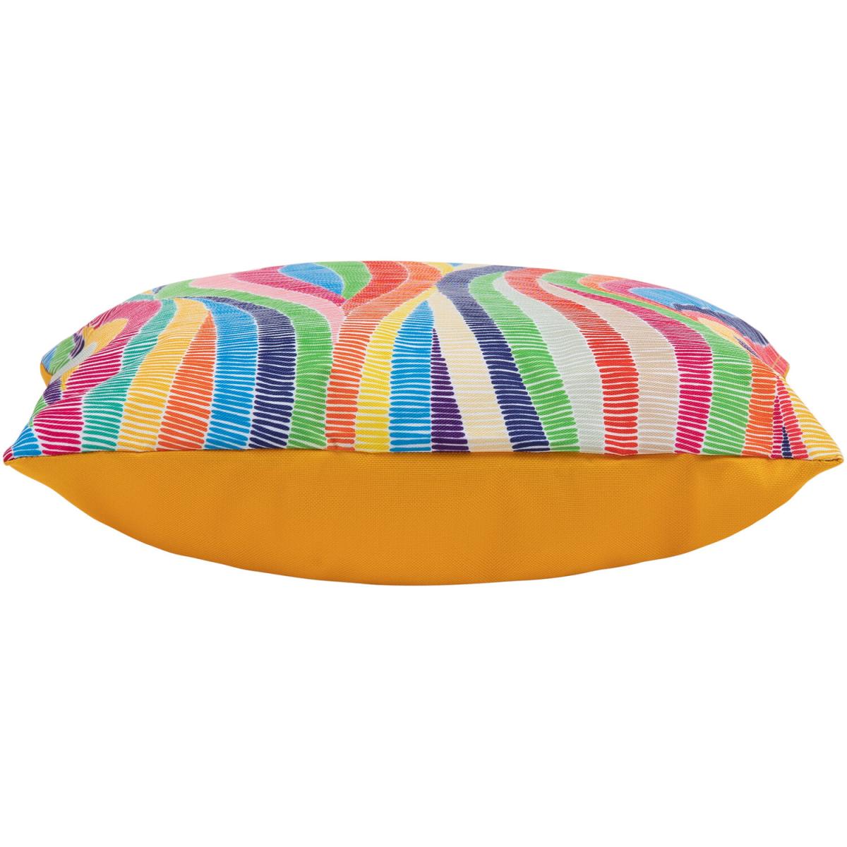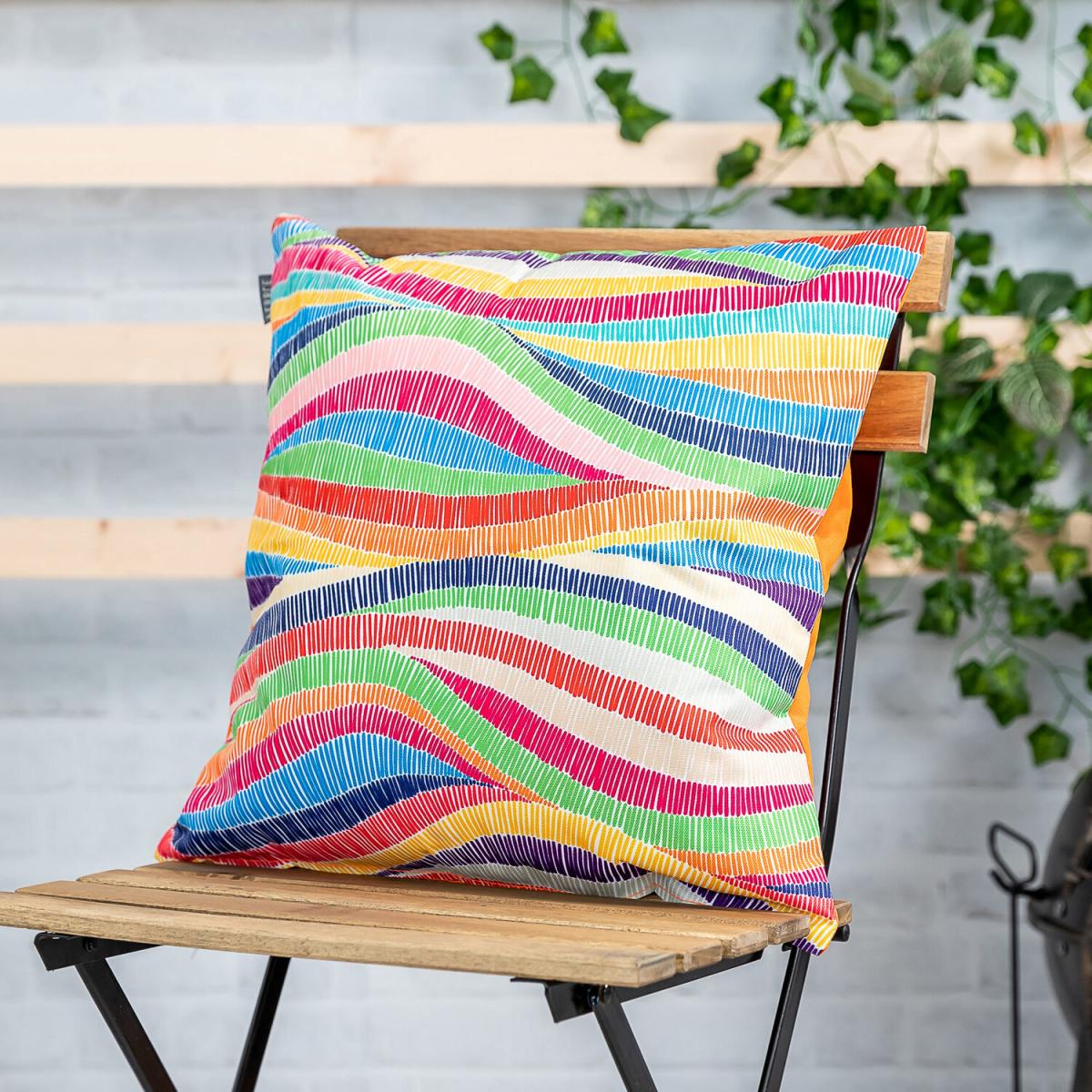 Instantly uplift your indoor or outdoor decor with this vibrant rainbow cushion. Its dazzling design is a great way to refresh and renew your space. Filled with a plump hollow fibre, this comfortable bohemian-inspired cushion is perfect for adding a decorative touch to your outdoor furniture. Designed with 100 waterproof fabric this patterned cushion is ideal for indoor and outdoor use. Extend its life by simply wiping clean any spillages and storing them in a cool, dry place indoors - ready to bring outside when the warmer weather arrives on fresh spring and bright summer days.