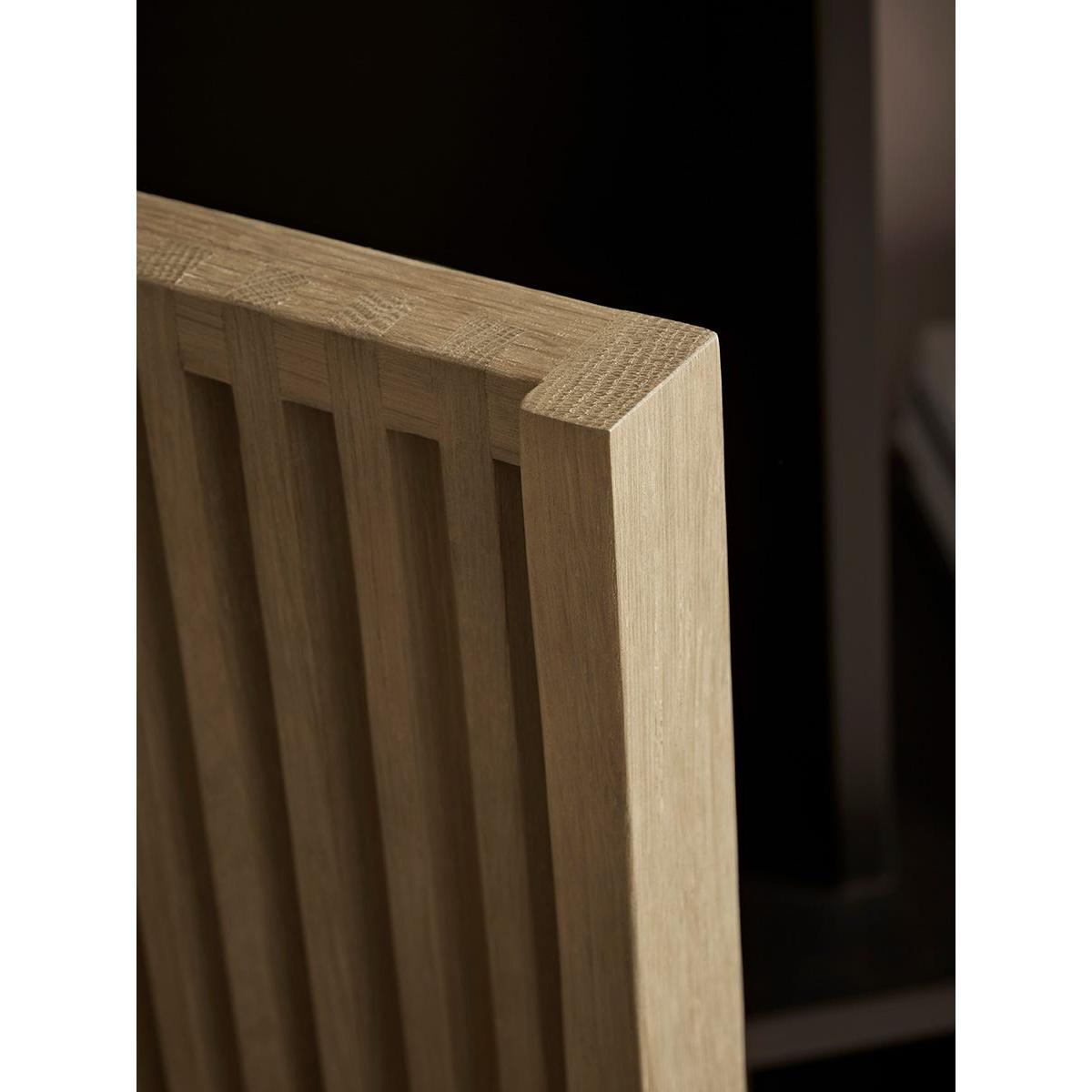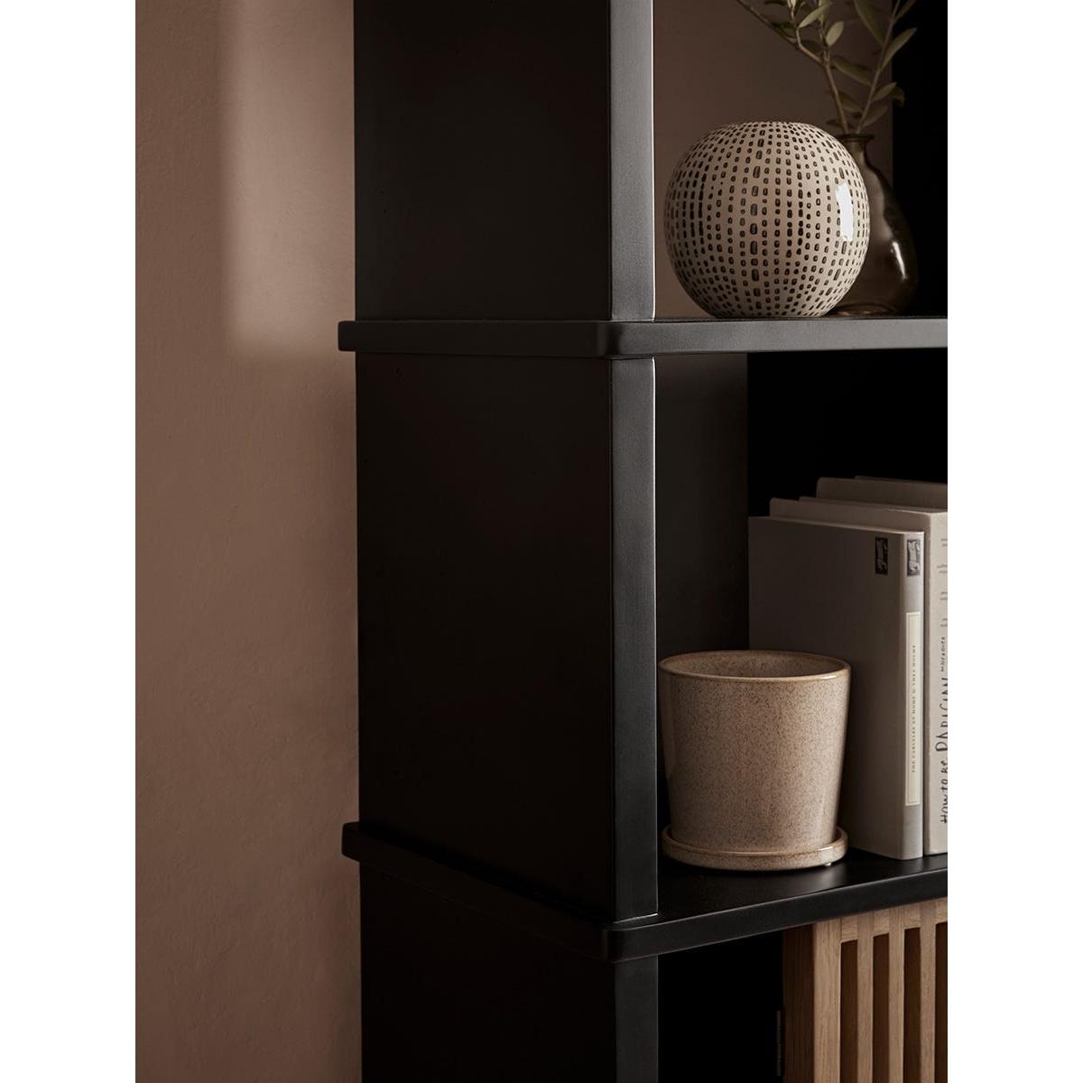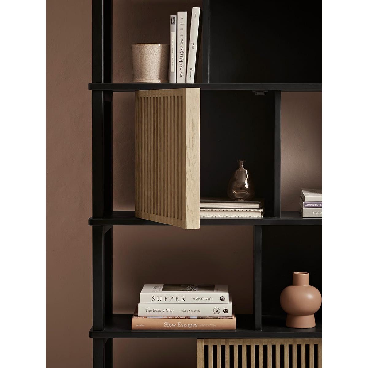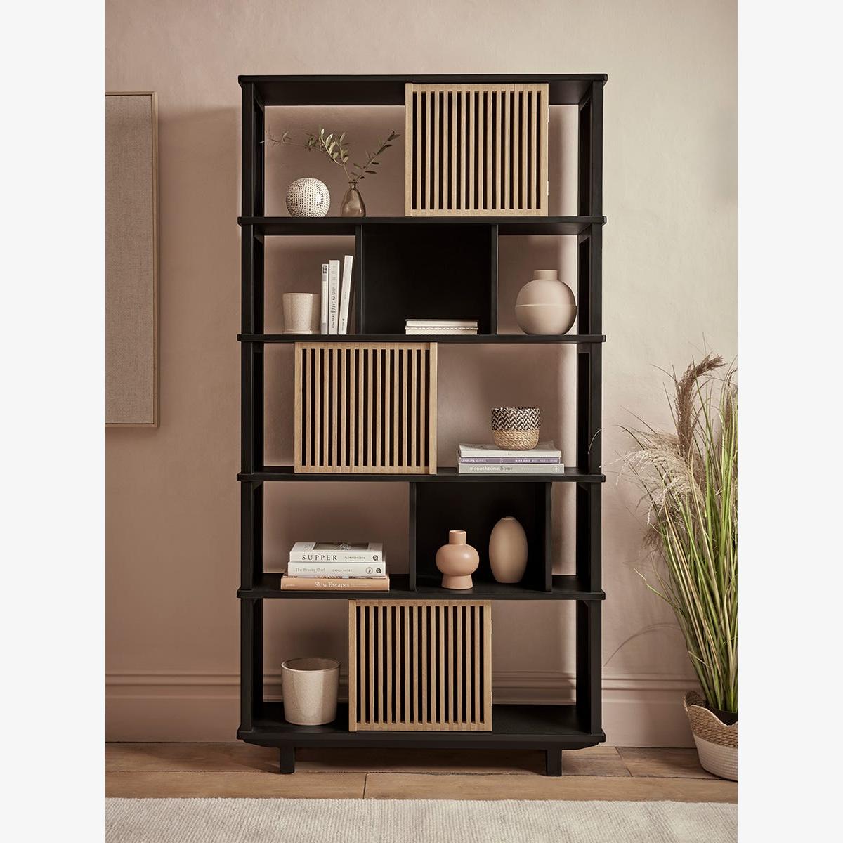 Perfect for a neutral and minimalist home, our Rainier Shelf Unit beautifully combines the light tones of oak with a dark painted wood for a modern and sophisticated contrast. An asymmetrical arrangement of shelves, cubby holes and cupboards allows you to perfectly curate an arrangement of books and decorative ornaments, whilst also keeping less attractive items behind closed doors. The open shelves show off the colour of your walls beautifully, while the cubby holes add a contrast to the light oak cupboards which have slatted detailing, for a visually enticing finish.