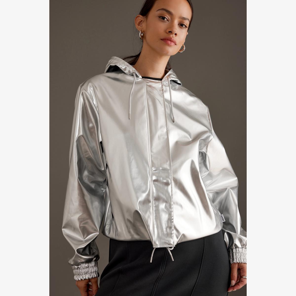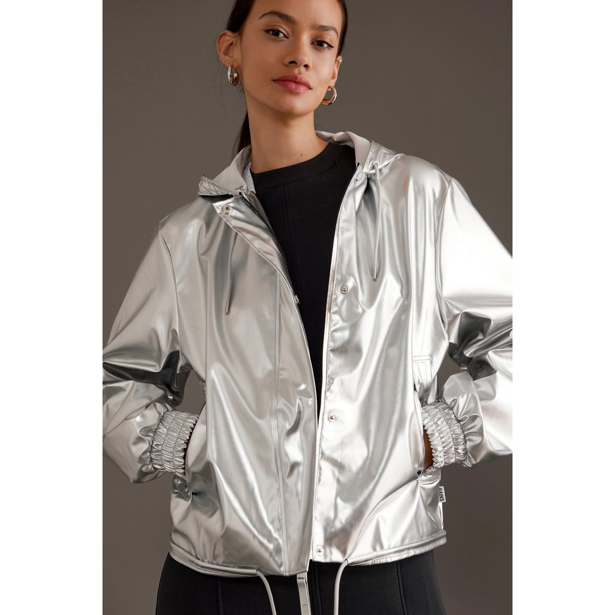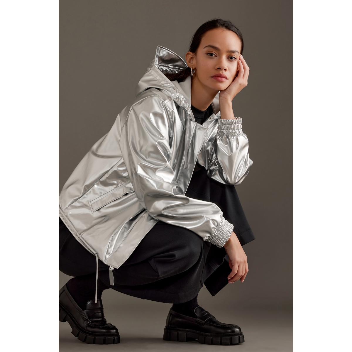 By Rains 100% Polyurethane-coated polyester Snap-button and zipper styling Drawstring hood with built-in cap Double-welded side pockets Ventilation eyelets under arm Waterproof protection from light rain & windproof Machine wash Imported Fit: Loose, cropped silhouette Mirror String W Jacket by Rains in Silver, Women's Size: Small at Anthropologie