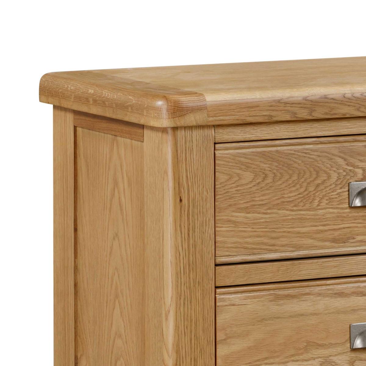 I love the Raithwaite six-drawer wide chest for its clean lines and versatile look. It works particularly well in both traditional and contemporary interiors, especially when paired with other natural wood finishes or muted colour palettes. Its generous size provides ample storage while maintaining a sleek profile, making it ideal for bedrooms, living rooms, or even hallways. Practical styling tips include adding vintage or brass accents to complement the brown oak finish, or layering it with textiles and decorative trays for a more lived-in feel. Its understated design makes it a reliable piece that can adapt as your interior style evolves.