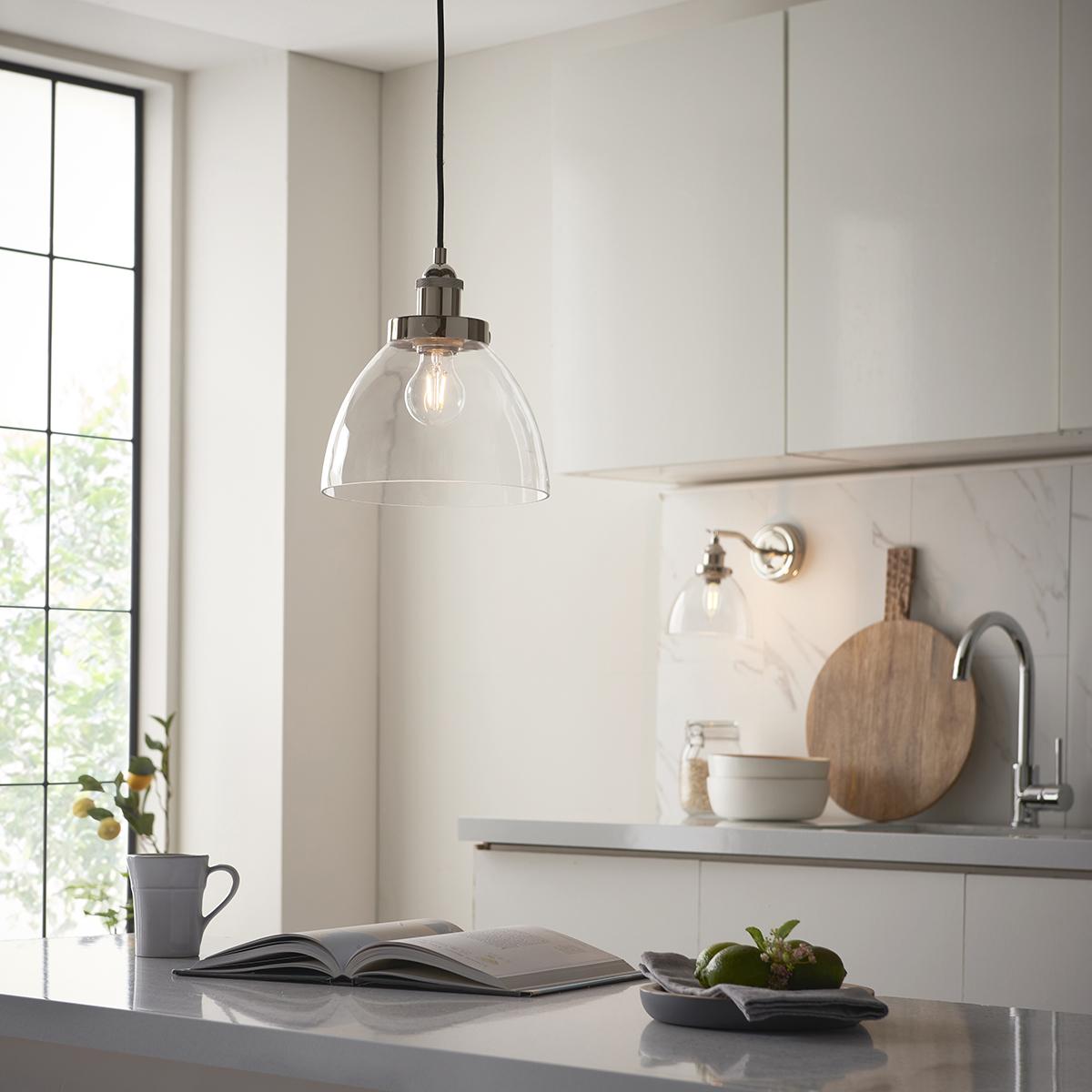 I love this pendant for its clean, modern look that effortlessly blends contemporary style with a touch of industrial edge. The bright nickel finish gives it a sleek, polished appearance that works well in minimalist or urban interiors, but it can also add a fresh contrast in more eclectic spaces. It’s versatile enough to sit above kitchen islands, breakfast bars, or even in a bedroom or hallway where subtle sophistication is desired. For practical styling, consider pairing it with filament bulbs for a warmer, inviting glow, and hang it at varying heights for a layered lighting effect, particularly in multi-light setups or open-plan layouts.