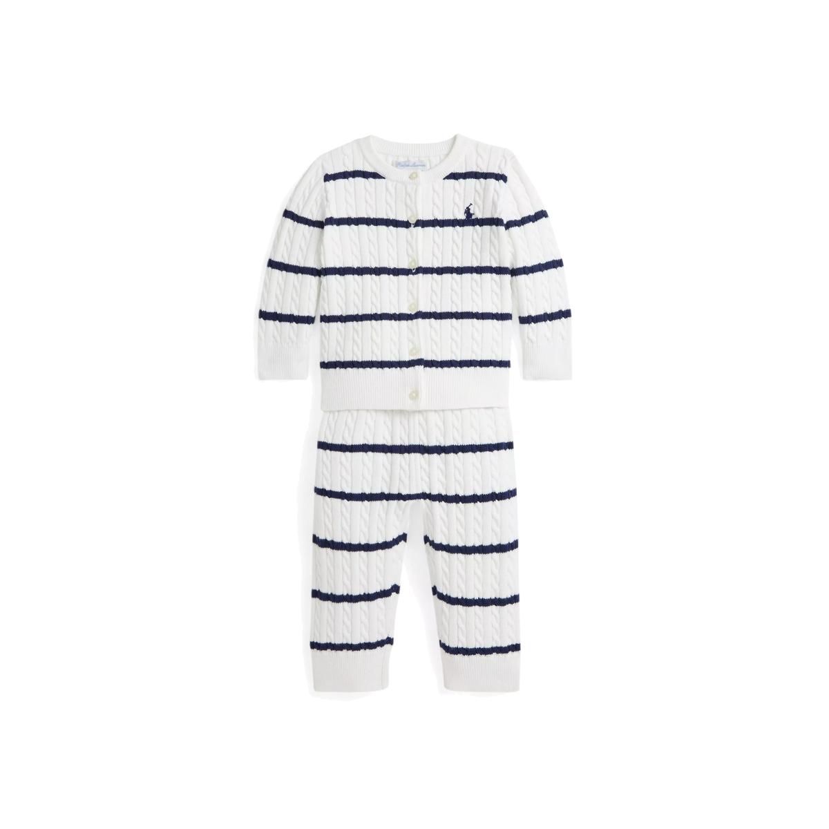 Made with medium-weight combed cotton, this cardigan and leggings set features nautical stripes, a mini-cable pattern and Ralph Lauren's signature Pony embroidered on the chest.