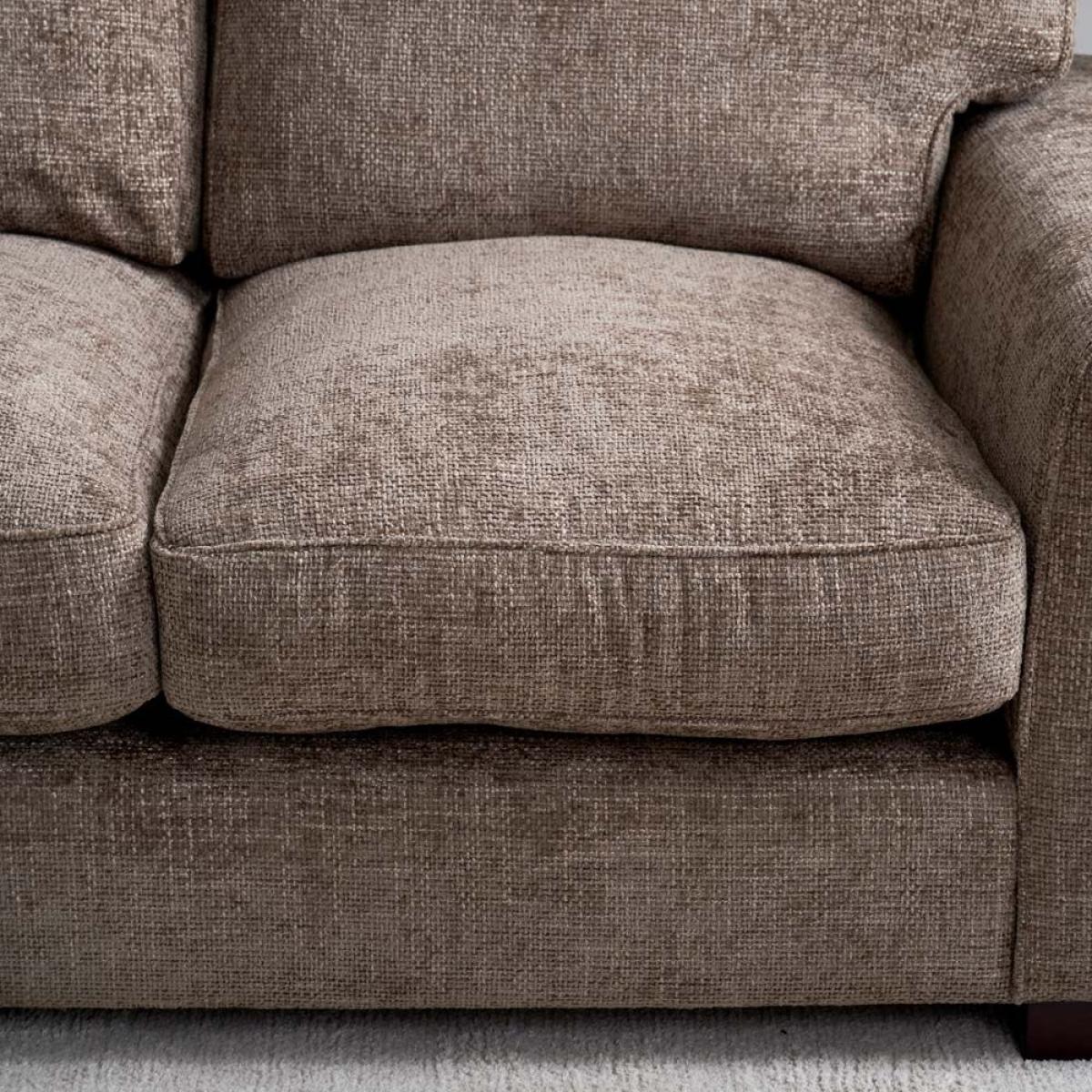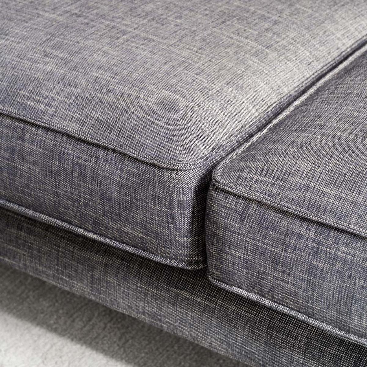 The Ralph Sofa is a supremely comfortable sofa, and handmade in the EU. The sofa has a well proportioned line, and the upholstery is experty piped around the corners of the low profile arms and around the plump cushions. The sofa is supported by slimline dark stained wooden block feet. Currently available in this Hazel fabric which is a mixed weave with a woolen texture. More fabric options coming soon.