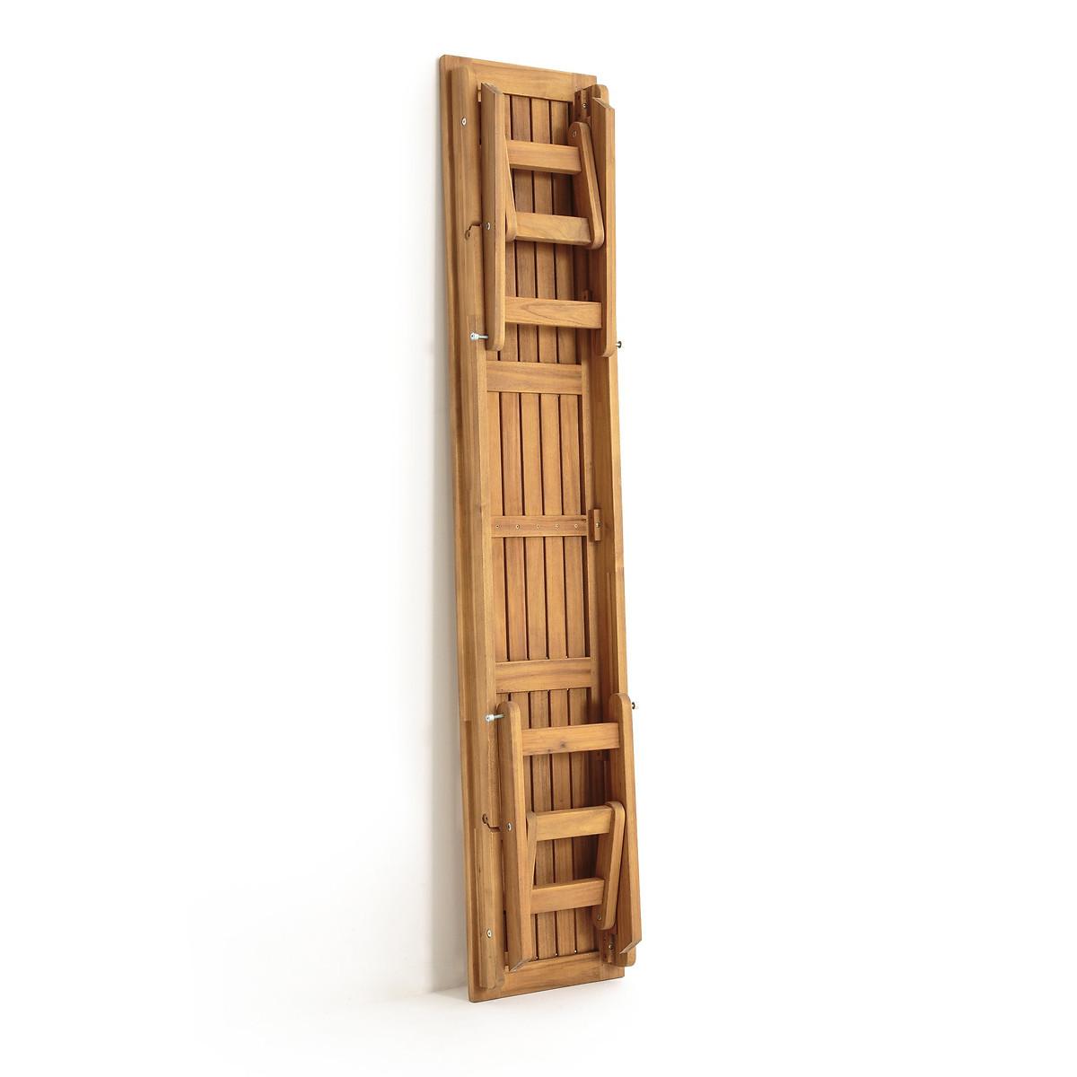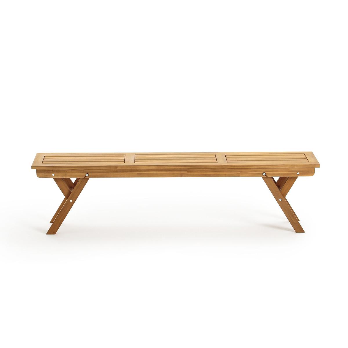 The Ramaldi acacia garden bench has a folding base for easy storage and much appreciated space saving. This bench is the perfect complement to the Ramaldi garden table to be found on the site. Product Details • 3-seat bench • Slatted seats • Folding base, guaranteed space saving • Acacia wood structure with oiled teak tinted finish. FSC® certified wood Quality Info • Acacia is a wood that offers good mechanical properties (good resistance to insects and fungi) and is resistant to bad weather (alternation of dry and humid periods).Dimensions • Length: 180cm • Height: 46cm • Depth: 35cm • Weight: 11kgDelivery:. This product is sold ready to assemble. • WOOD FROM SUSTAINABLY MANAGED FORESTS. FSC® certified wood comes from forests that are environmentally, socially and economically well managed. Dimensions and weight of parcel1 parcel • L186 x D40 x H10cm. 13.5kg