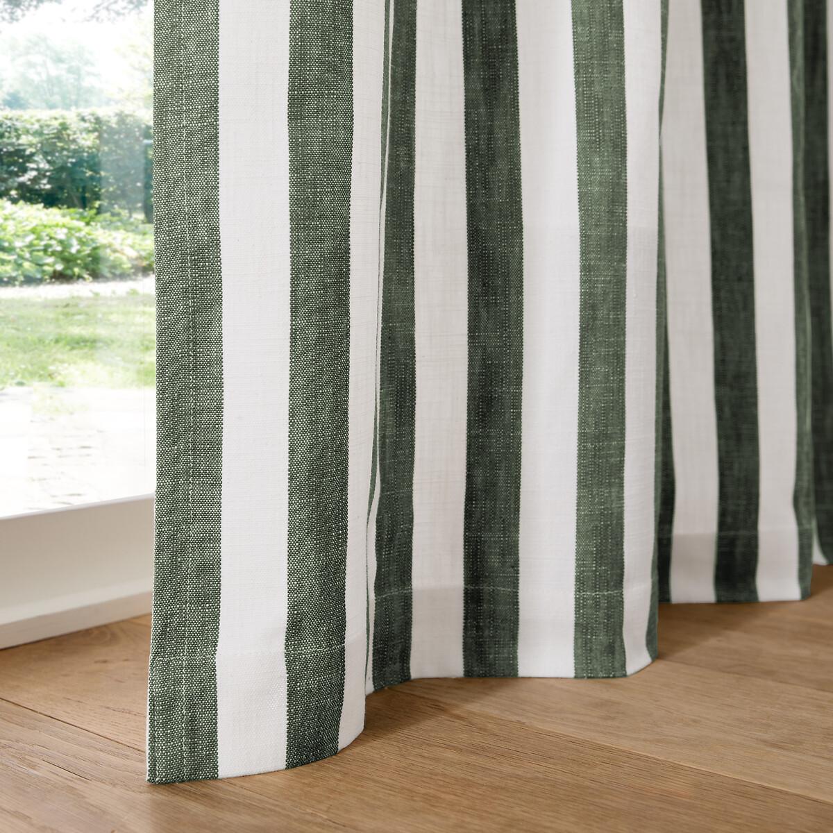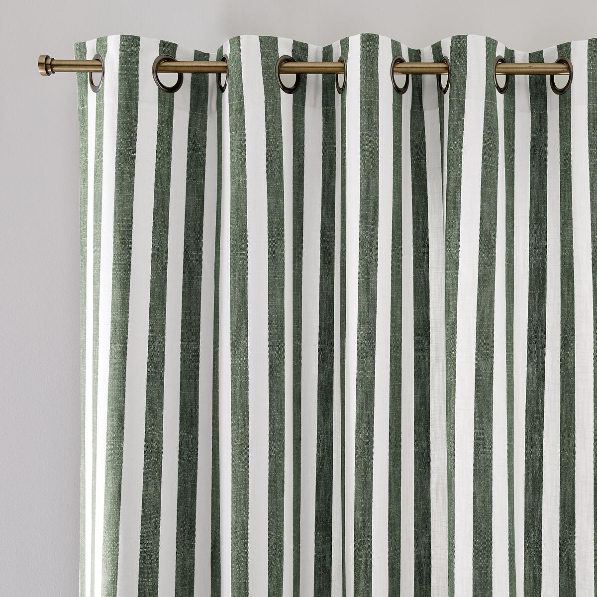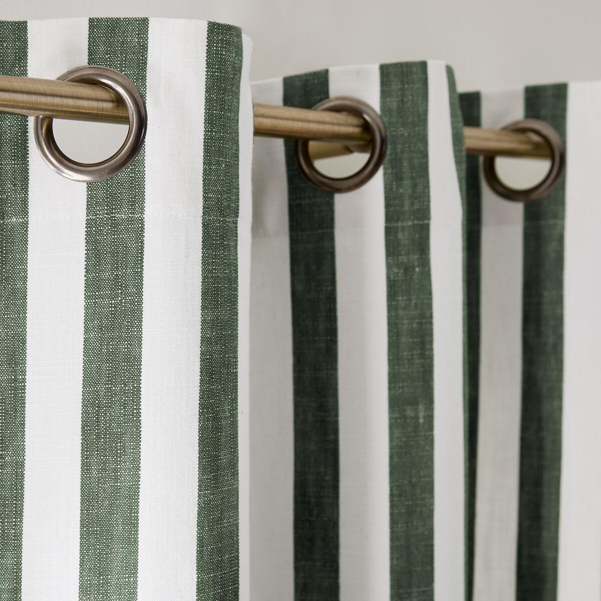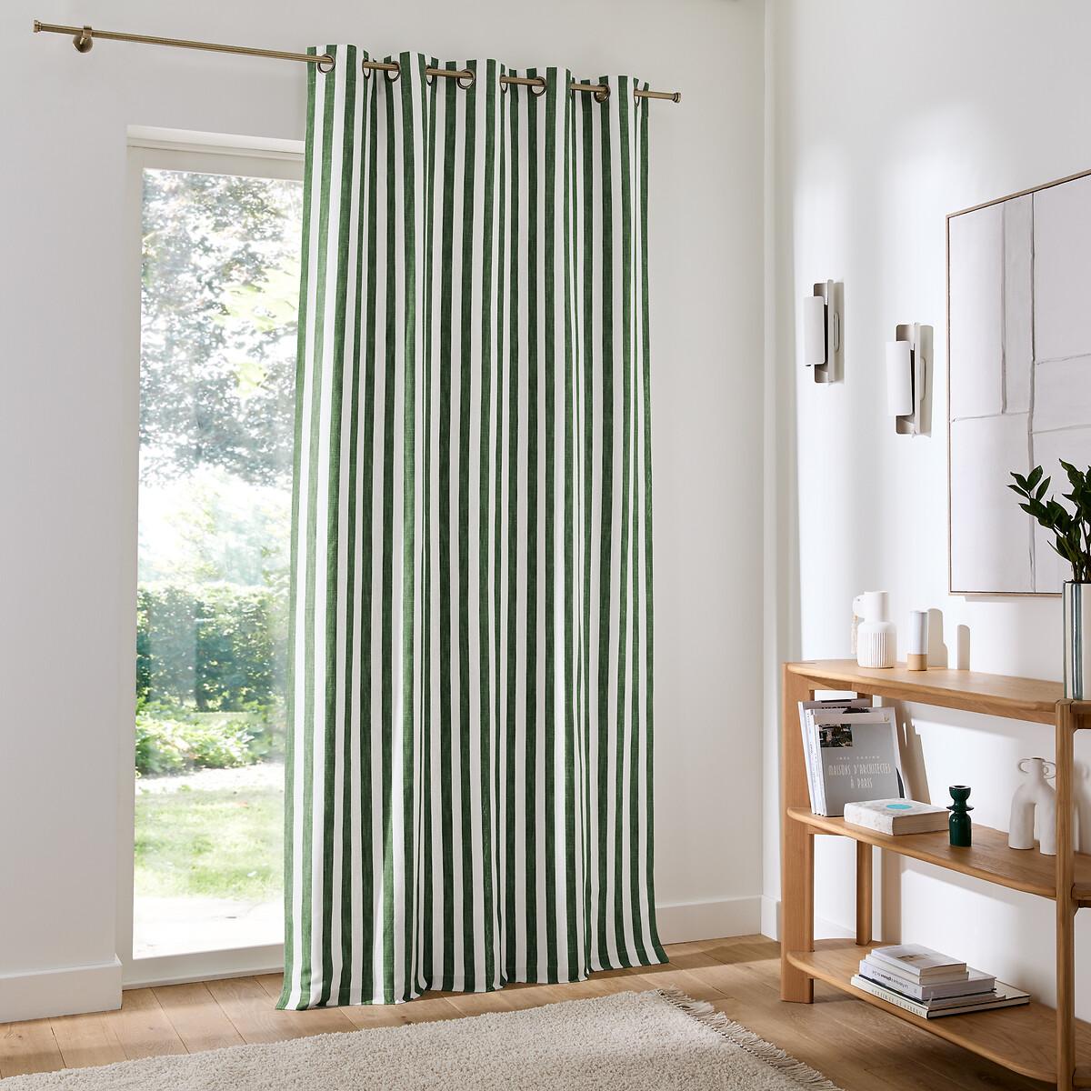 The Ramla striped curtain creates a warm, cosy atmosphere in your home. The eyelets guarantee nice regular waves and ensure the fabric falls beautifully. They slide perfectly on the rod, making it easy to open and close the curtain. Product Details • Screening • 100% cotton, 320g • Top finish : eyelets • Inner diameter of eyelets: 4cm • Finished bottom :Plain hemmed edging • To help you in the choice and maintenance of your curtains, do not hesitate to consult our guide by typing "Curtain Buying Guide" in our search engine on the site. Care Advice • Machine washable at 30°C • Maximum shrinkage after washing : Approximately 5 to 7%. Fabrics made from natural fibres may shrink in the first wash. Always wash your curtains before making any alterations. • Do not tumble dry • If you don't need to iron them (linen curtains, Voile Panel...), let the curtains air dry by hanging them immediately after washing, making sure to spread them out to their full width. • If you want to iron your curtains, we recommend using a low-temperature steam iron or a steamer. Dimensions • Drop 180 x W135cm • D260 x W135cm • OEKO-TEX® Standard 100. Standard 100 certification by OEKO-TEX® tests textile products for harmful substances via an independent, international label.
