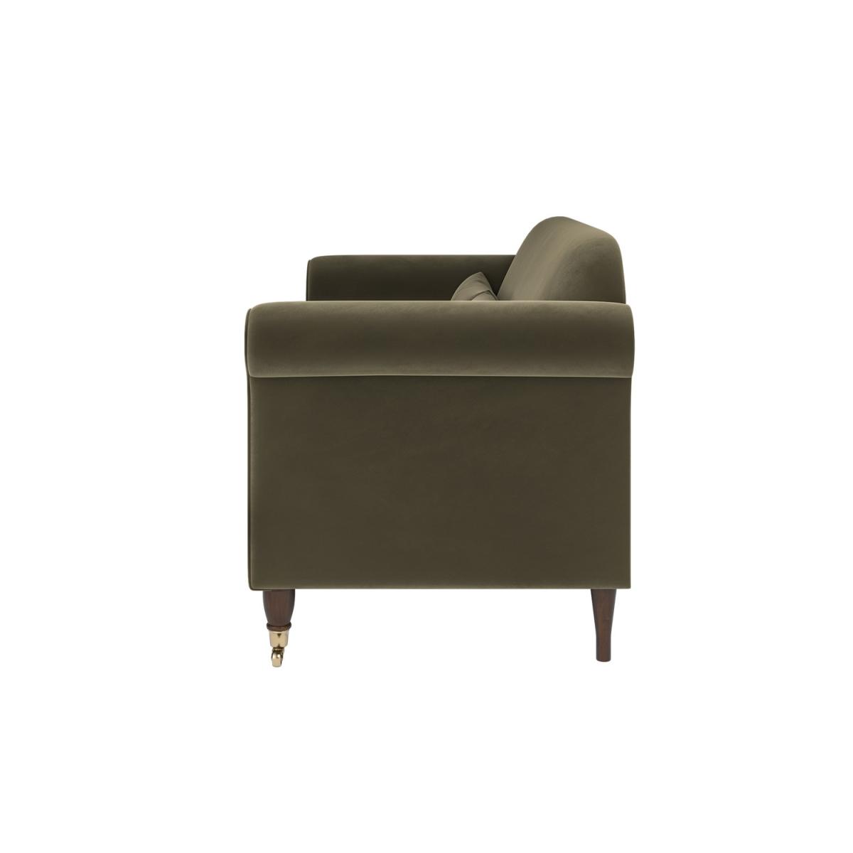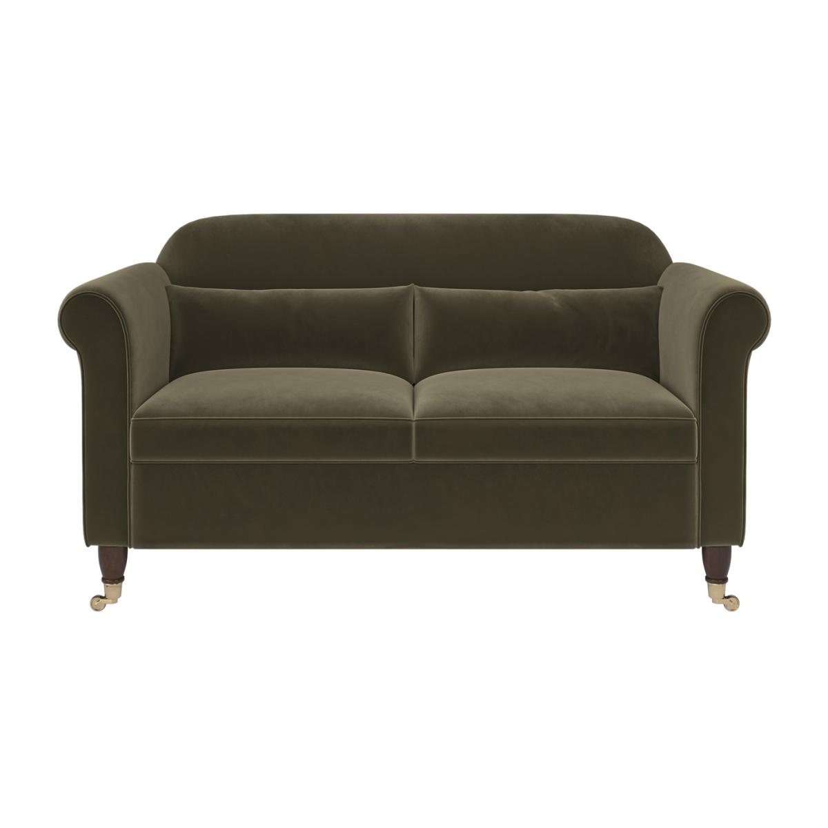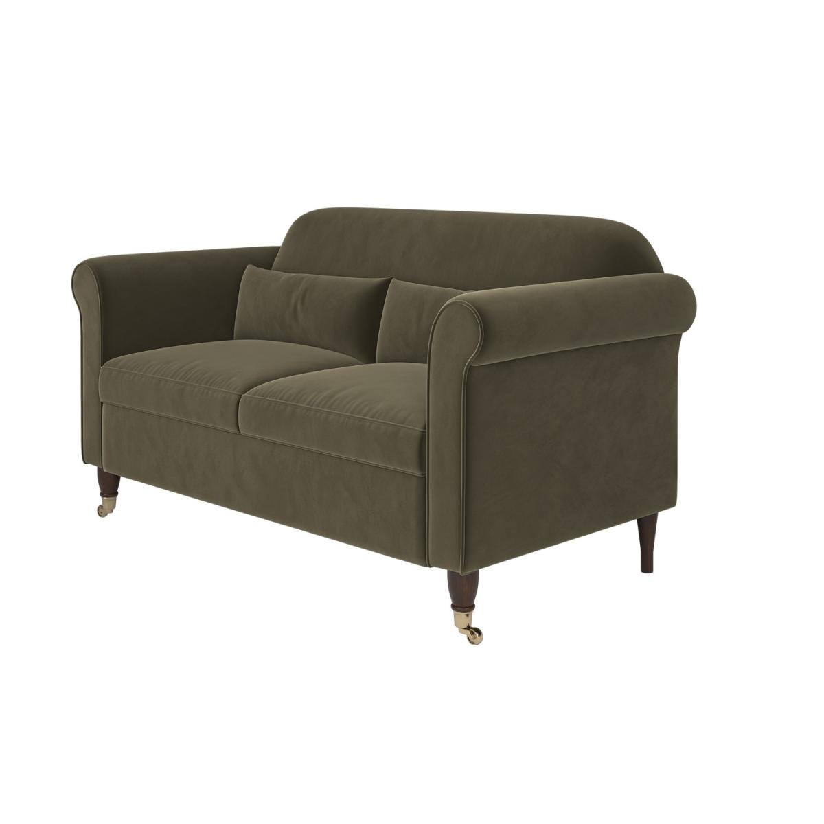 Scatter Cushions Included Finished in soft yet durable khaki green velvet, Ramona offers both comfort and style, adding a warm and inviting feel to your living space. Features classic scroll arms and turned wooden legs with castors, combining vintage charm with modern practicality. The foam and fibre-filled seats provide exceptional comfort and support, perfect for couples or small families. Comes with coordinating scatter cushions that complement the overall design, enhancing both comfort and style. Removable cushion covers make cleaning and maintenance a breeze, ensuring lasting beauty and functionality. The Ramona traditional 2-seater sofa in Khaki Green Velvet brings a timeless elegance to any living room. Upholstered in soft yet durable khaki green velvet, this sofa offers both warmth and sophistication, making it an inviting centrepiece for your space. With classic scroll arms and turned wooden legs with castors, it blends traditional charm with modern touches. The foam and fibre-filled seats ensure long-lasting comfort and support, while the removable cushion covers make cleaning easy. Perfect for smaller spaces, the Ramona sofa adds plenty of character and comfort, making it an ideal choice for any home.