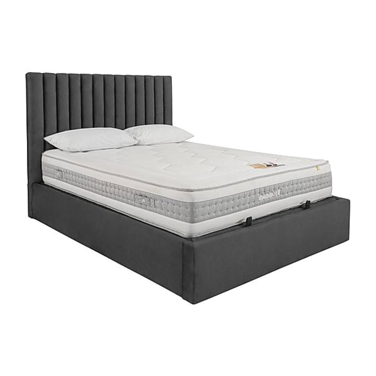 Please note: this clearance item has limited stock and is subject to availability. Rest up in regal style with the Ramos ottoman bed frame. Its beautiful fluted headboard pairs with spacious underbed storage perfect if youre short on space or have a large shoe collection. Why you'll love it Grand bedframe with space- saving underbed storage. Sleek contemporary style with a classic silhouette. Fluted headboard. Available in a double bed size. Exclusive to Furniture Village. What you need to know Mattress not included. Piston- assisted lift mechanism for easy- access storage. Clean weekly using a soft brush or vacuum with the curtain attachment. Annual professional cleaning is recommended. Some fabrics can show wear on areas of more use or in direct sunlight.