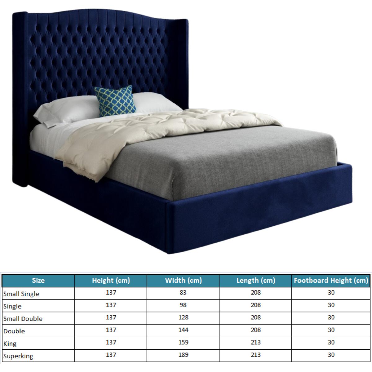 The magnificent curve top headboard is guaranteed to create an envious interior. It features beautiful chesterfield pleated upholstery complimented by a minimal surround and upholstered footboard. The unique shape of the headboard creates an aura of sophistication and royalty. Truely majestic centre piece with unbelievable comfort to match. The headboard is generously padded and choose from buttons to match your fabric or diamante buttons to contrast. The bed frame features a solid slatted base for ultimate support and comfort.