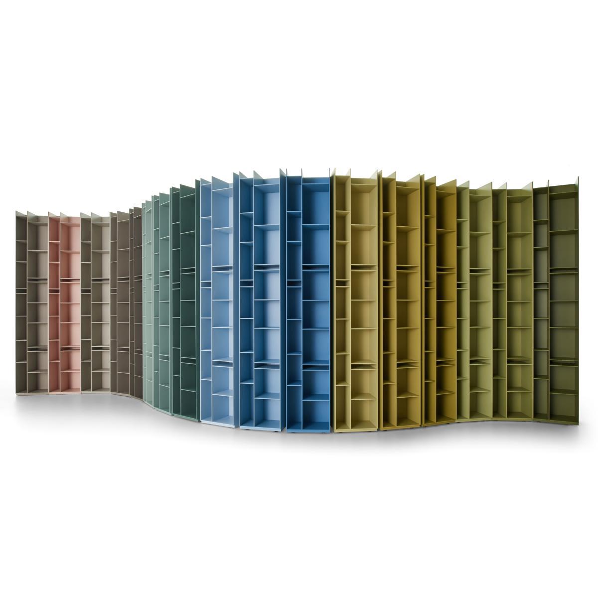 The iconic Random bookshelf has been awarded several design prices, and includes a dozen compartments of different sizes, arranged randomly on different levels. A wonderful asymmetric assembly, a succession of narrow and rhythmic spaces. Available in numerous subtle colours with lacquered matte finish, you can create wonderful walls in a nuance colours by assembling them. Thanks to its narrow design, the Random 2. C bookcase is easy to slide into cramped spaces. Random will showcase your books and favourite objects in a very graphic manner. With Random, the bookcase won't only be used for storing books: It dresses the wall with elegance and becomes a real space to express yourself. You can arrange your books and decorative objects as if you were composing a painting. For example, you can group books by colour or format for maximum effect. This bookcase is made with lacquered wood fibre. You can arrange several bookcases next to each other to create an infinitely modular piece. For safety reasons, we recommend you fix the bookcases to the wall.
