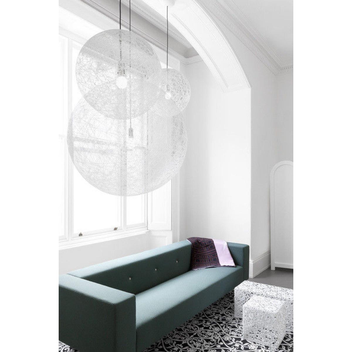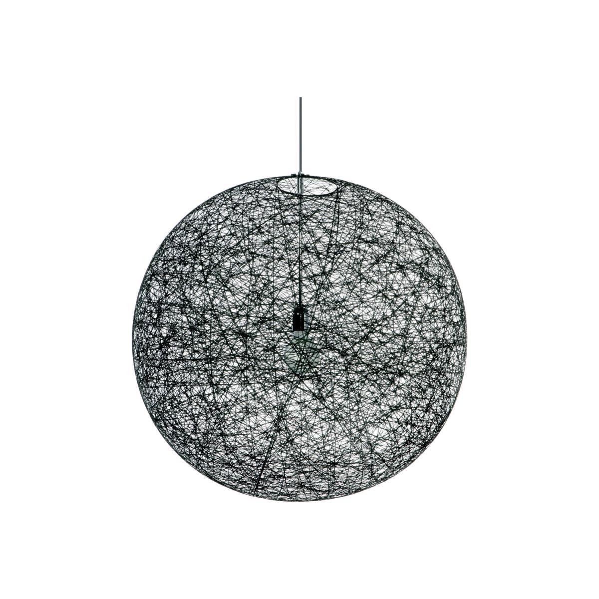 From the design team monkey boys for moooi, 2002. These beautiful suspension lamp is constructed by coiling fiber glass drained with resin around a balloon. This may seem like a simple enough technique, but it took the monkey boys three years to fully develop the idea. The random light is available in 3 sizes and two colors (black and white).