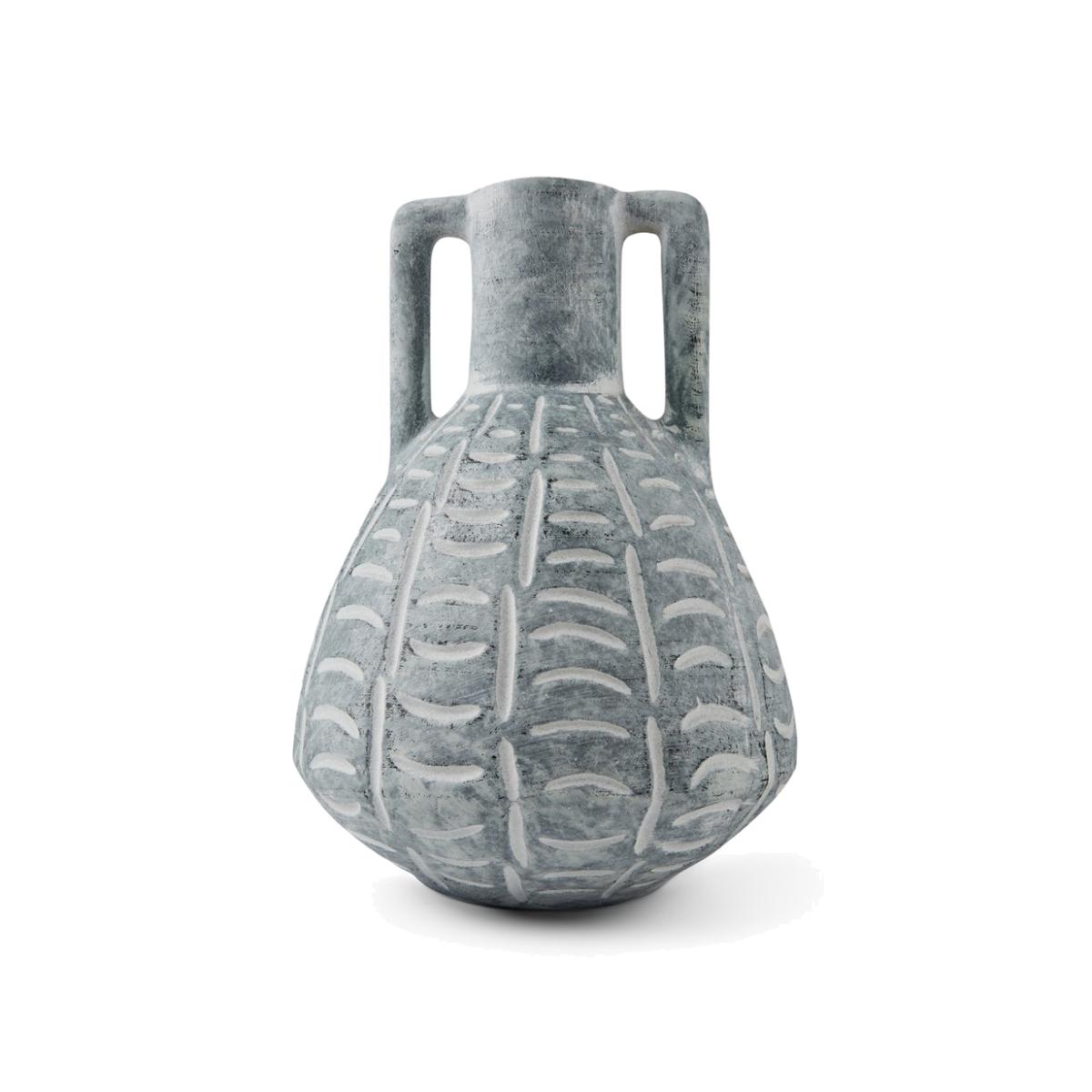 I really like this vase because of its sculptural form and textured detail, which makes it a versatile piece that can elevate both modern and rustic interiors. Its neutral tone and organic shape mean it works well in minimal schemes, as a standalone statement, or mixed with other ceramics for a layered look. For styling, I recommend placing a few fresh or dried stems to keep the look contemporary yet effortless. It’s particularly effective on open shelving, coffee tables, or sideboards where its shape and texture can be appreciated close up. Keep in mind that its substantial form makes it suited to larger floral arrangements or statement single stems to maximise its visual impact.