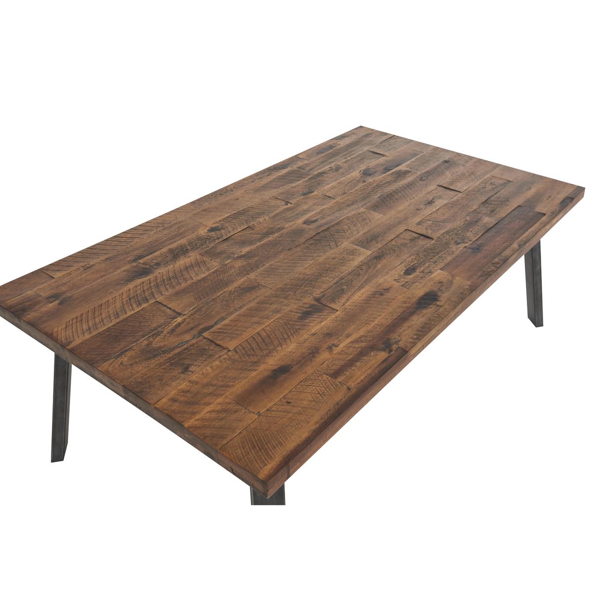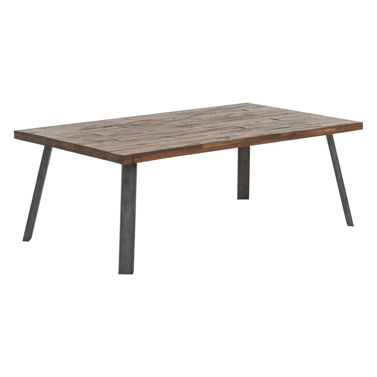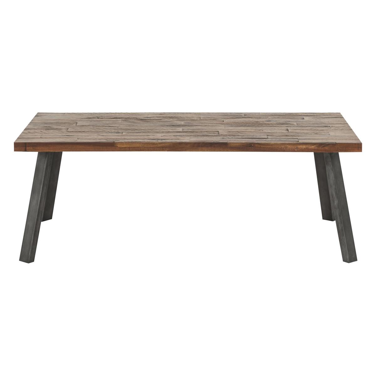 Simple and stylish with an easy rustic charm, the Ranger coffee table is the perfect piece for your loft living-inspired home. Featuring a combination of solid acacia wood, acacia wood veneers and metal, this piece blends materials and finishes effortlessly. The top is made of warm acacia wood and acacia wood veneers, with wood inlays that give it a charming undulating appearance. The surface has plenty of natural characterful grain as well as a cross sawn effect that adds texture. This large rectangular top is set on angled metal legs that have a brushed gunmetal grey finish. The great value Ranger coffee table is one of several occasional tables in the Ranger collection. The range also includes a dining table, three styles of dining room seating, and storage pieces. This coffee tables pairs fantastically well with the Ranger side table. Just like fingerprints, no two pieces of reclaimed timber furniture are the same. Natural and man-made characteristics of reclaimed timber can include textured and distressed areas, wood grain, wood knots and colour variance, infills, sanded down nail holes and visible joints.