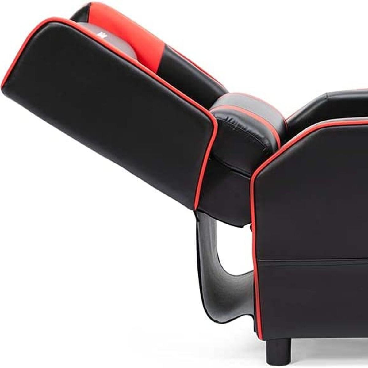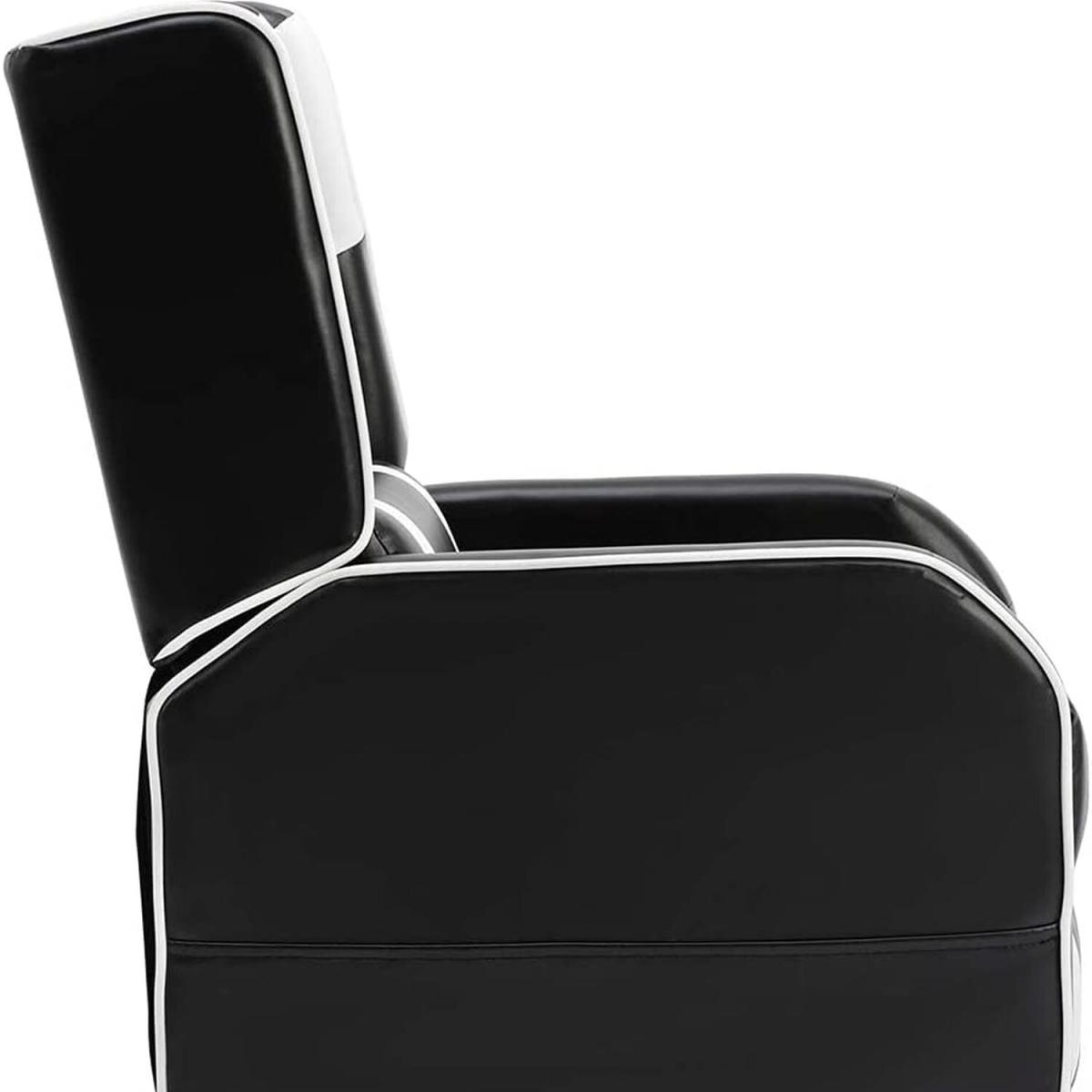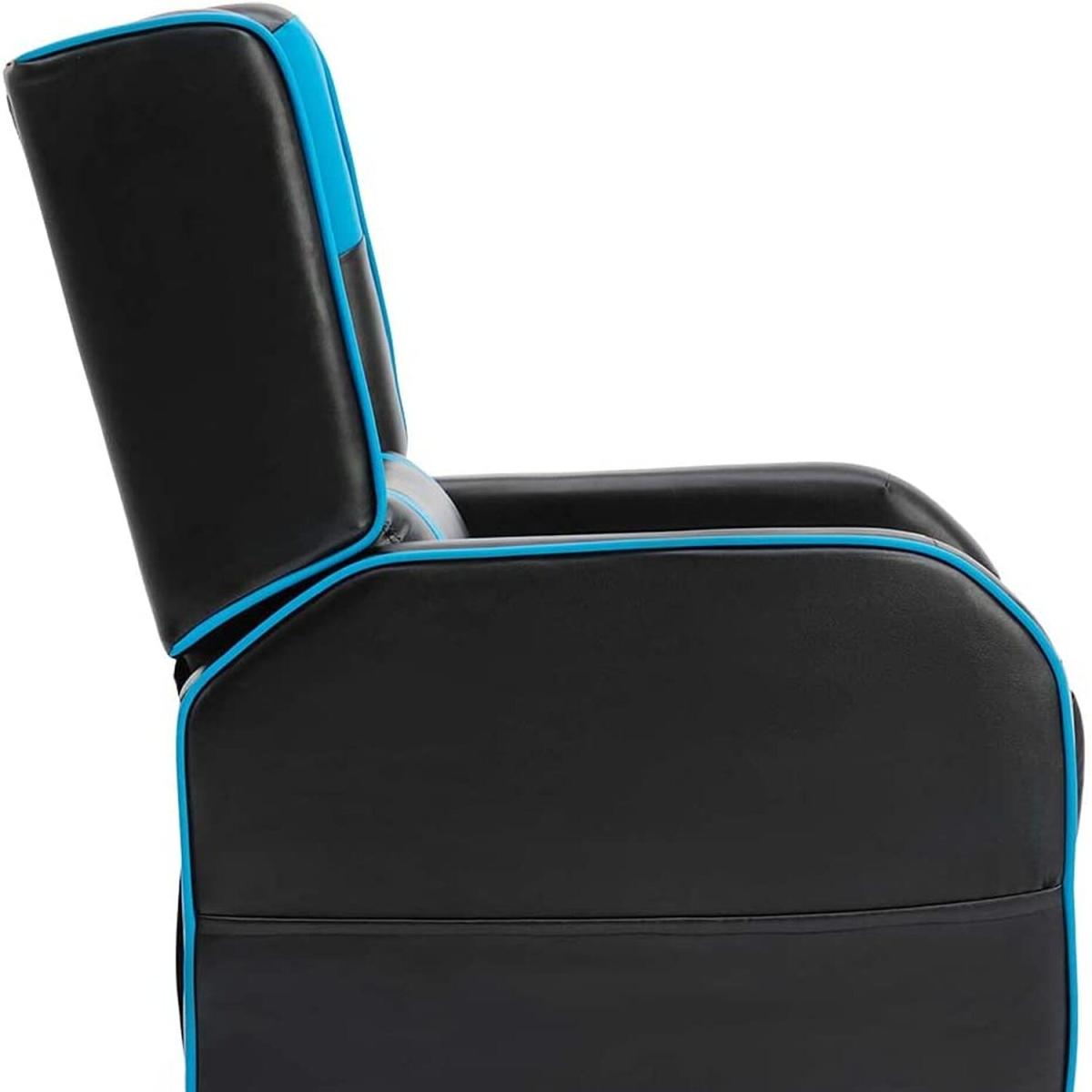 I love this gaming-style recliner for its sleek, contemporary look and the bold pop of colour that can really bring a modern touch to a variety of interiors. It works particularly well in man caves, media rooms, or a stylish home office where a relaxed, sporty vibe is desired. To style effectively, consider pairing it with minimalist furniture in neutral tones to let the blue pop and keep the space looking cohesive. Practical tips include adding a cosy throw or minimalist side table, making it both functional and visually appealing. Its faux leather finish offers easy maintenance, making it perfect for busy households or gaming zones without sacrificing style.