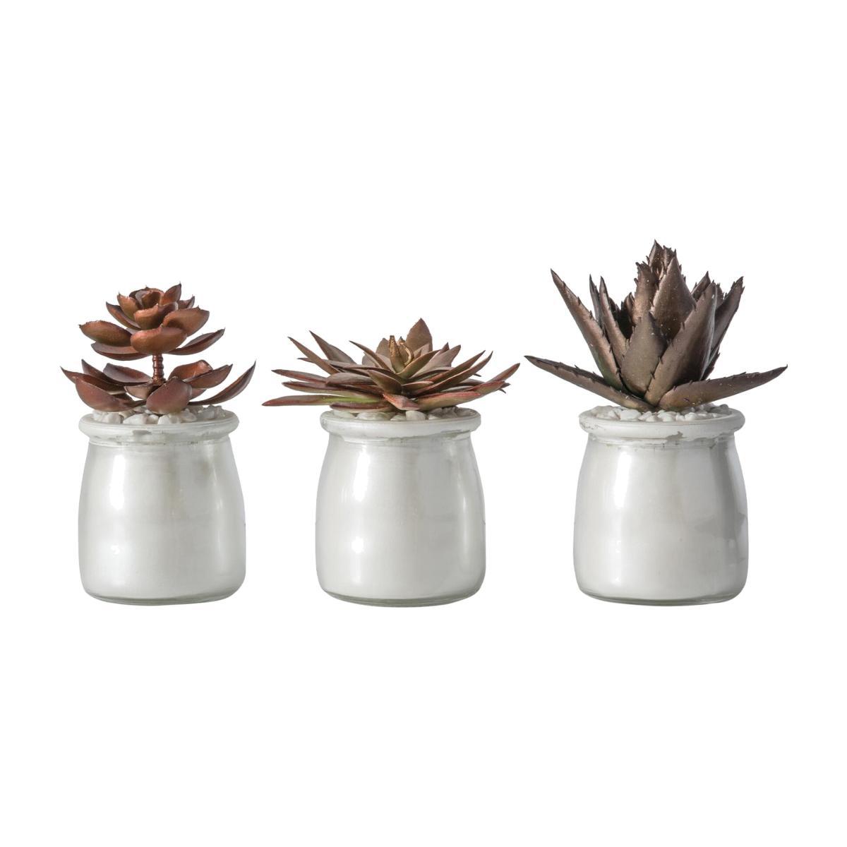 I love how the Rangley metallic pots with their sleek finish add a modern twist to faux succulents. These are particularly versatile and work well in contemporary or minimalist interiors, but can also bring a touch of sophistication to industrial or boho styles. Practical styling tips include grouping them on a windowsill, coffee table, or shelf for visual interest, or pairing with other metallic accents to create a cohesive look. Their durability makes them ideal for spaces with less natural light or high traffic zones where real plants might struggle, and they’re excellent in offices or bathrooms where low maintenance is a bonus. Just remember to vary the heights and textures to keep the arrangement looking dynamic and natural.