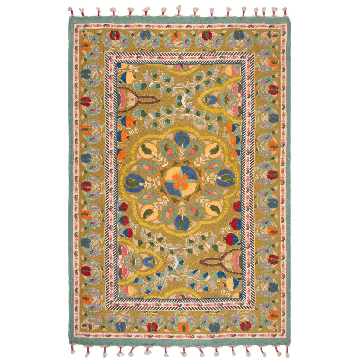 * Hand Embroidered* Traditional Floral Detail* Printed Cotton* Statement Piece Is your home craving a showstopping rug that will certainly turn heads? Then the Rani Embroidered Floral Rug is the perfect choice! Rani is intricately layered with a printed design that has been finished with hand embroidered details, to add a handcrafted feel and plenty of depth. The haven of colours come together beautifully in a display of traditional rug design, finished with a tasselled edge. The rug pictured is 160cm x 230cm. Care Instructions: Unroll your rug and leave for 24 hours during first use. Maintain your rug by vacuuming regularly with a nozzle attachment. Cut any loose fibres with scissors, do not pull. For accidental spills blot immediately and spot clean with a damp white cloth and leave to dry. Add anti-slip underneath your rug to prevent slipping. Rotate every few months to prolong the life of your rug.