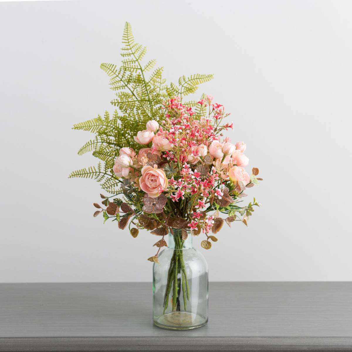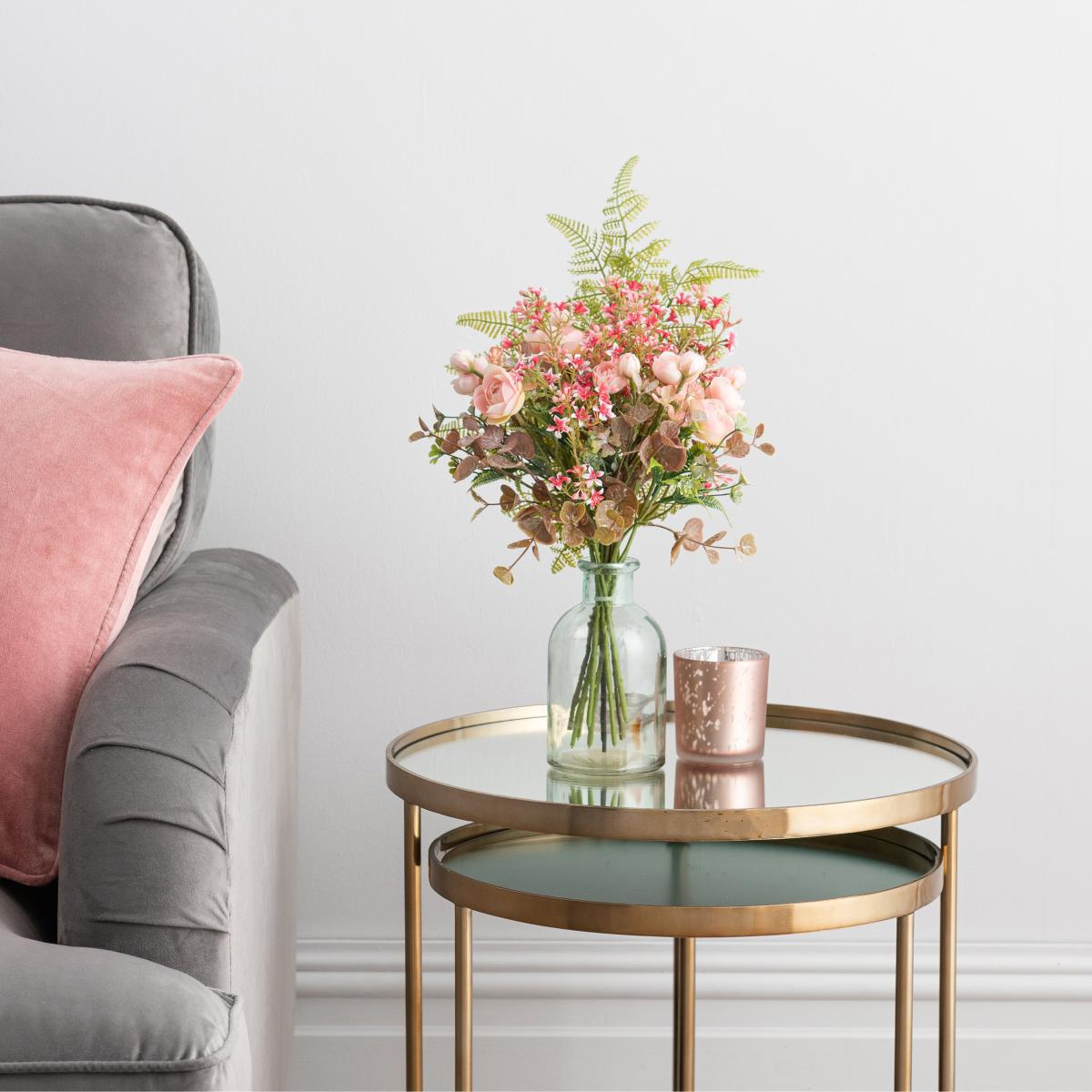 I love this fake flower arrangement for its soft pink tones and delicate details, which add a gentle pop of colour without overpowering a space. It works particularly well in bedrooms, bathrooms, or minimalistic living rooms where a touch of nature enhances the calm, understated decor. To style it effectively, I’d suggest pairing it with blush or neutral accessories and keeping it on a side table or shelf for maximum impact. Its realistic appearance also means it’s low maintenance, making it ideal for spaces where fresh flowers might not last. If you’re looking to brighten up a corner or add a feminine touch, this bunch is a versatile choice.