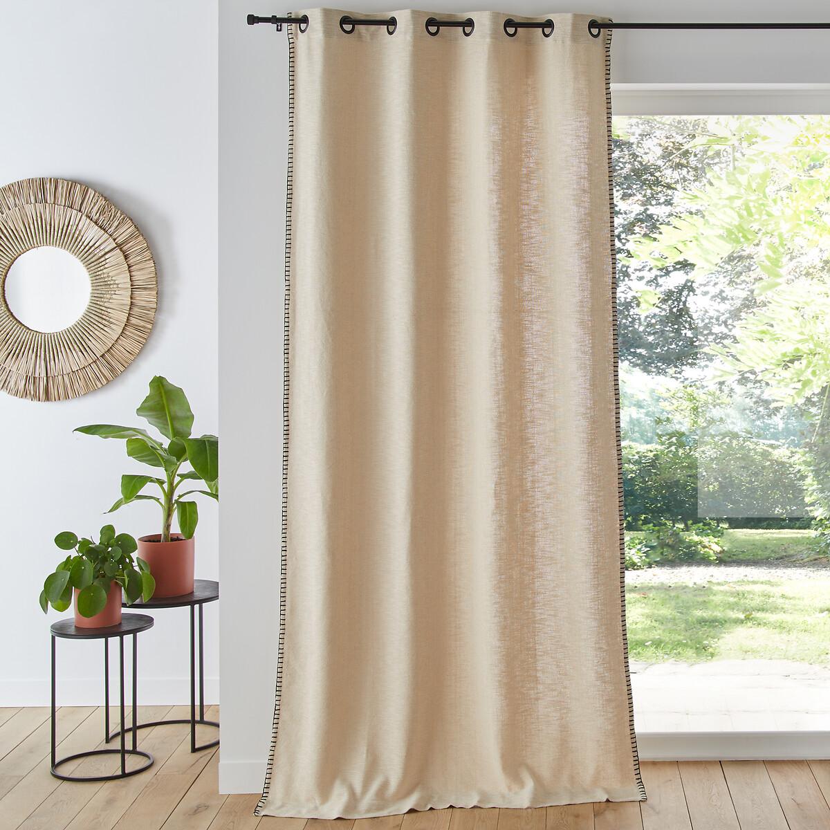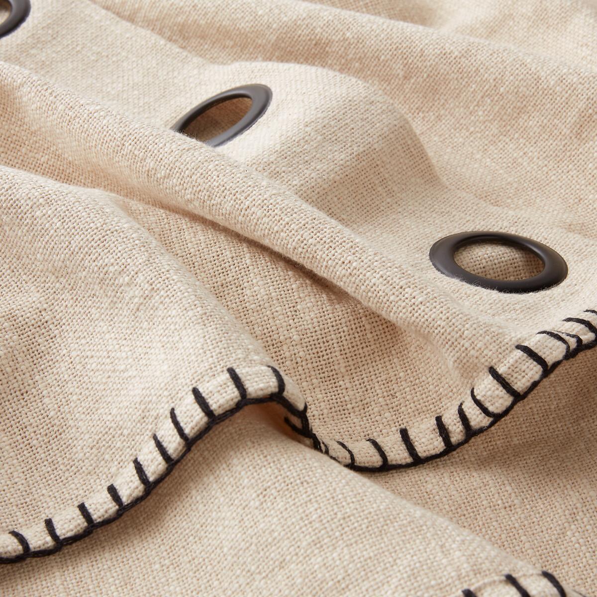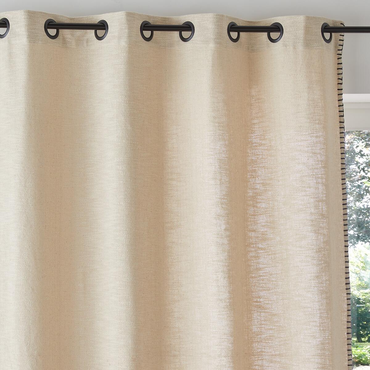 With its black stitch finish and its sleek material, the Raoul curtain will go brilliantly with your decor. Product Details • 100% cotton • Matte black eyelet finish • Finished hem • Black horse stitch finish on each side. Care Advice • Machine washable • Fabrics made from natural fibres may shrink in the first wash. Always wash your curtains before making any alterations. Size • Drop 180 x W135cm • Drop 250 x W135cm • Drop 350 x W135cm
