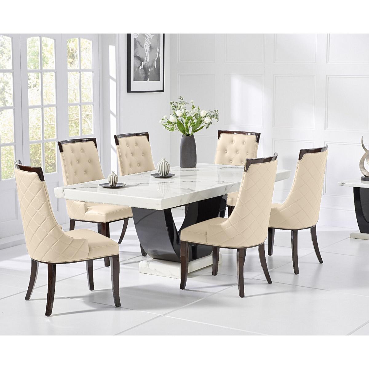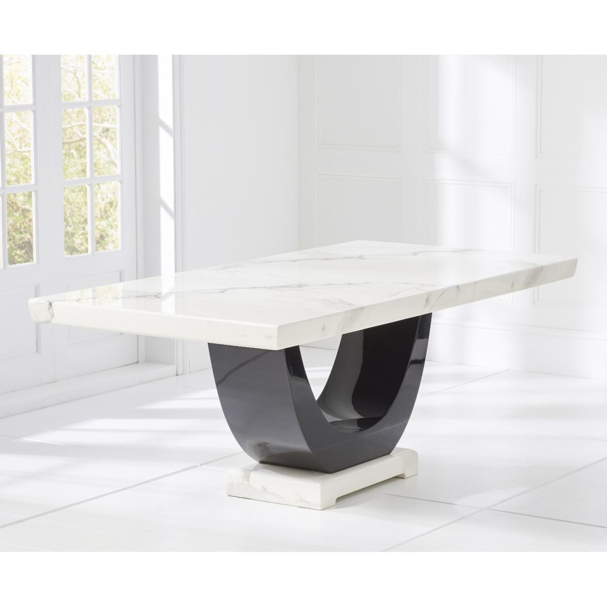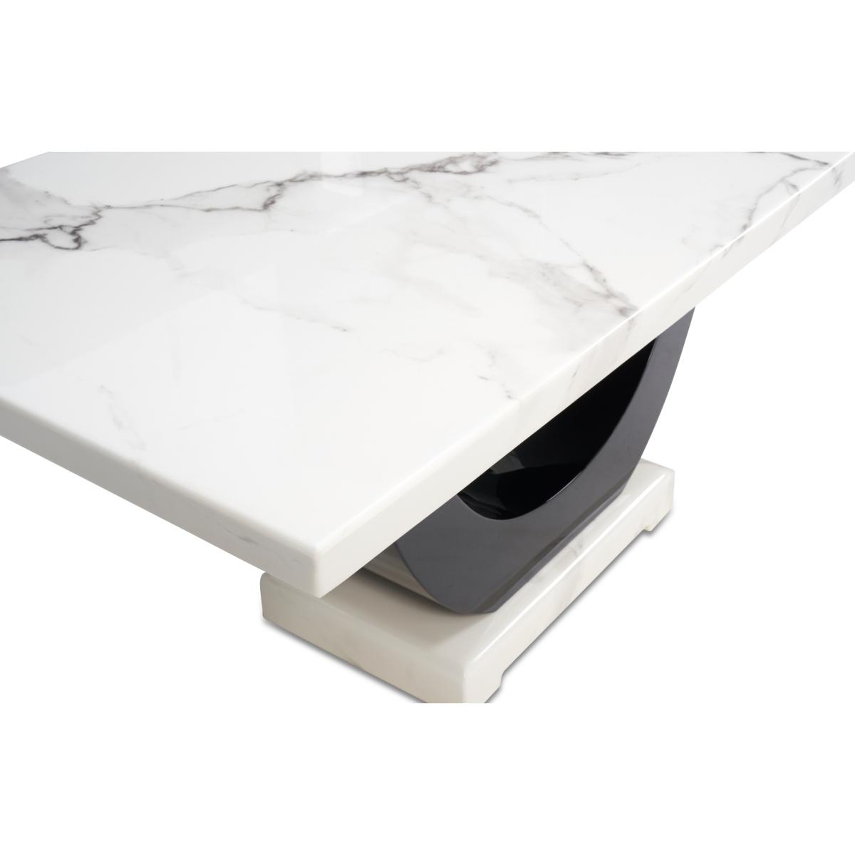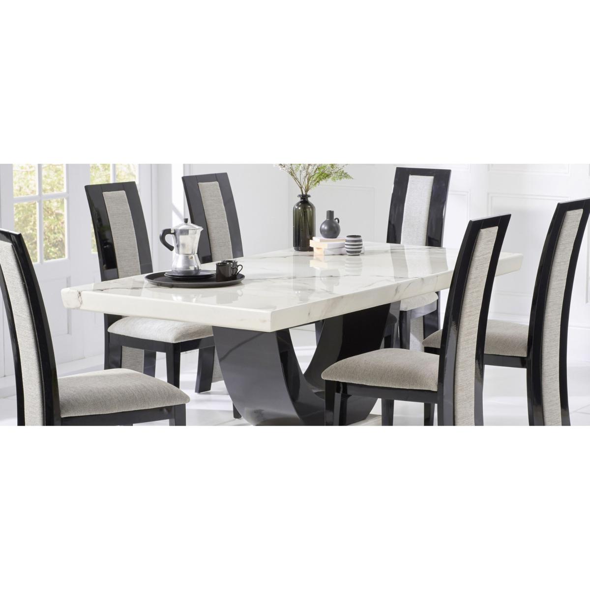 Raphael 200cm White and Black Pedestal Marble Dining Table with 6 Grey Francesca Chairs