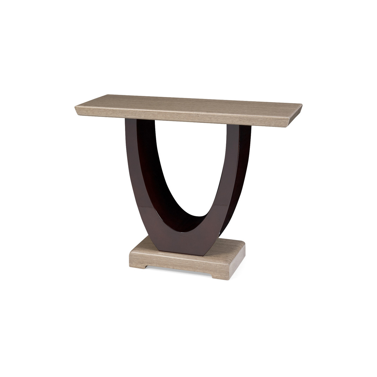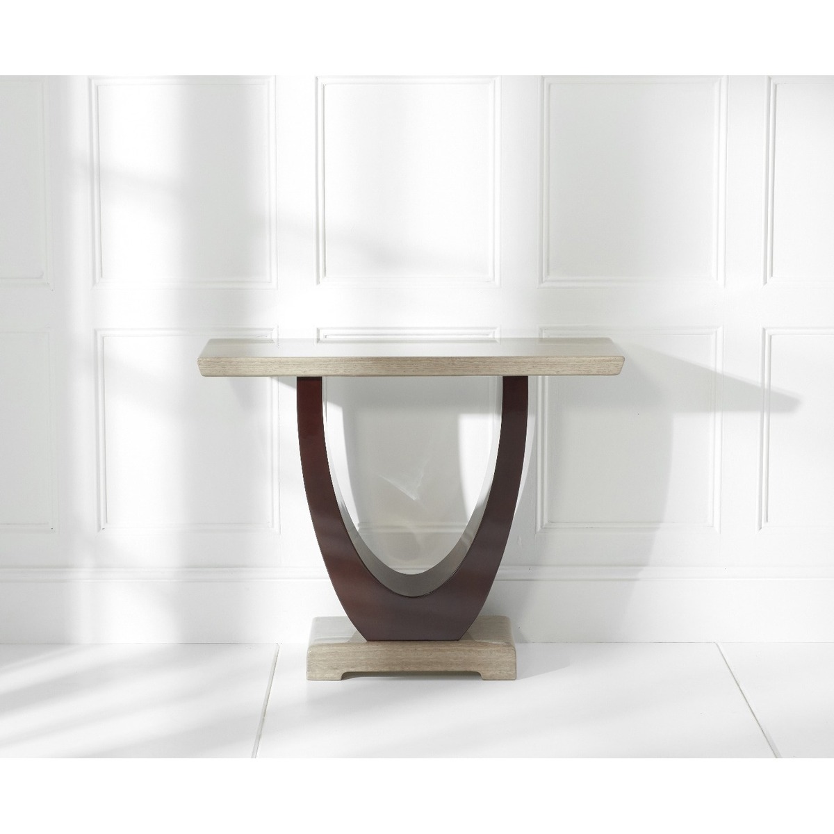 Featuring a stunning contemporary design, the Raphael Brown Marble Console Table makes a statement in any home. The perfect addition to your hallway, living room or dining area, this striking marble console table is extremely stylish and stable. Stylish marble console table. Curved pedestal design for great stability. Crafted with beautifully thick marble on the table top with a natural high gloss finish. Thick curved pedestal base, giving an extremely sturdy tableUV resistant. Heat resistant up to 50 degrees Celsius Additional Measurements:Table Top Thickness: 5cm. Pedestal Width: 27cm. Pedestal Depth: 60cm. Base Width: 35cm. Base Depth: 55cm. Height to Underside of Table Top: 81cm