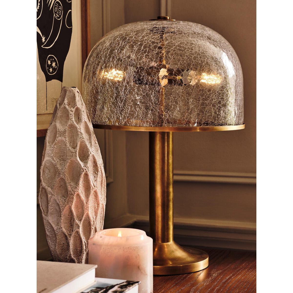 The Raphael table lamp creates atmospheric light in your living area and is inspired by 180 House. A mouth-blown, crackled glass shade is anchored with a solid brass pole and base, also known as raw or uncoated brass. Ours has an antique finish and has been left unsealed. It therefore ages over time to create a beautiful patina that adds character to new and old homes alike. This sturdy table lamp is guaranteed to make a statement. Mouth-blown, crackled glass shade Sturdy solid brass base and frame Pair with the Raphael floor lamp Creates atmospheric light Inspired by 180 House
