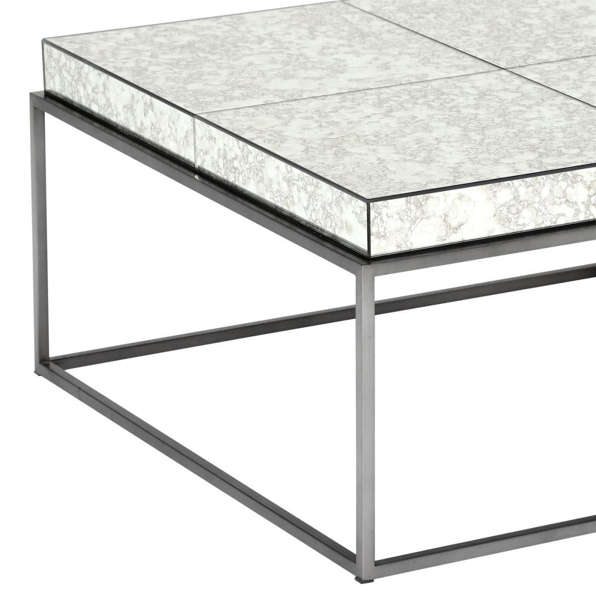 Design. A statement piece in its own right, the Rapson square coffee table features a unique mirrored table top in quarters. Putting a vintage twist on contemporary style, the glass is finished with a gorgeous antique effect. Perfect for showing off a rug, the table’s raw iron frame is slim and open to make the most of surrounding space. So stunning, you may not want anything placed on top.