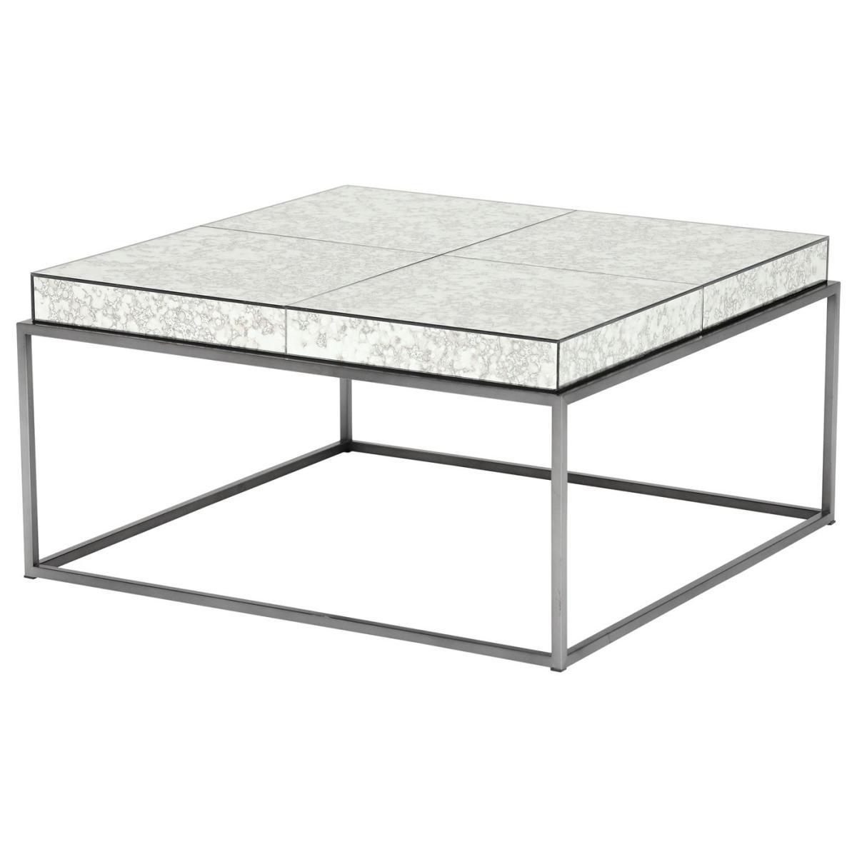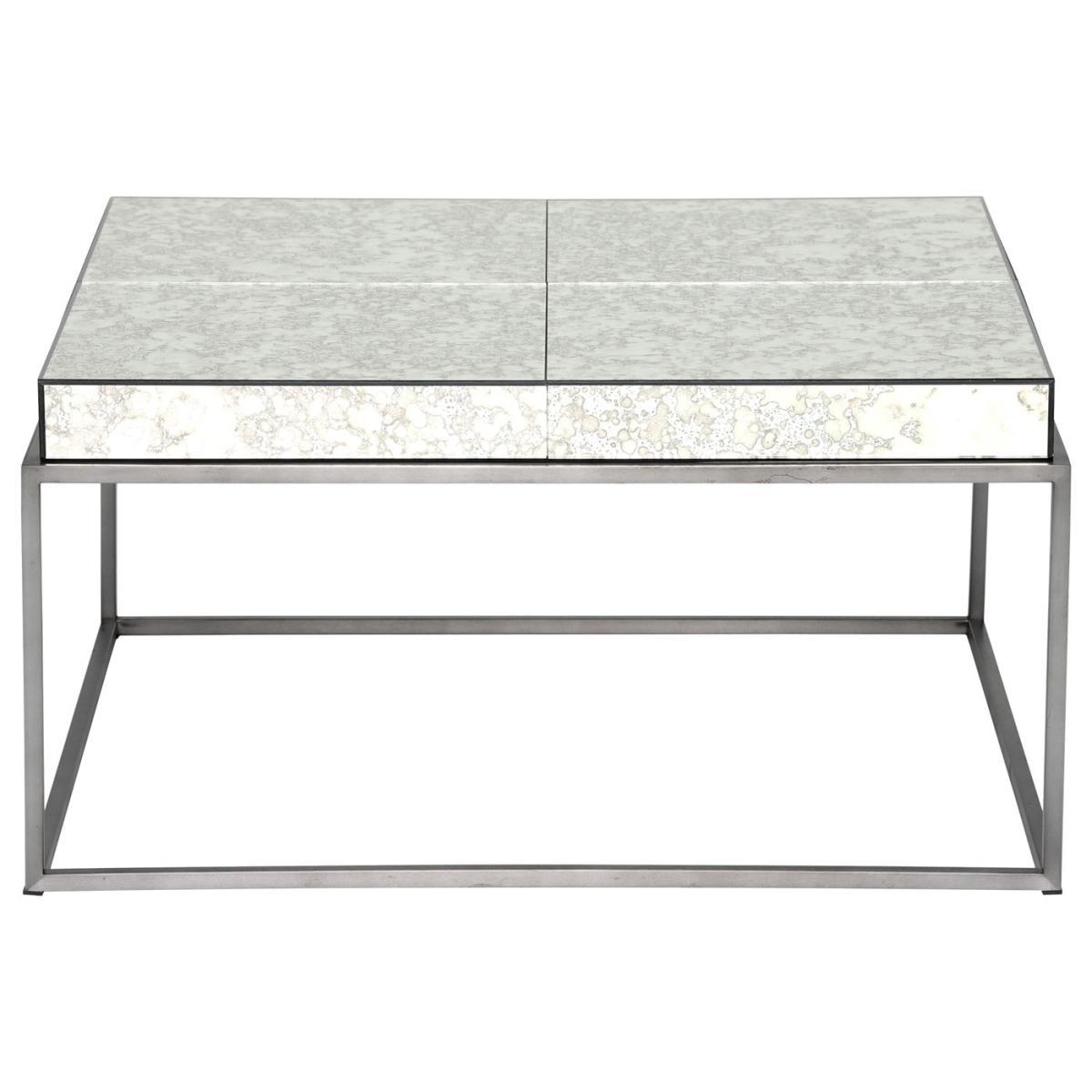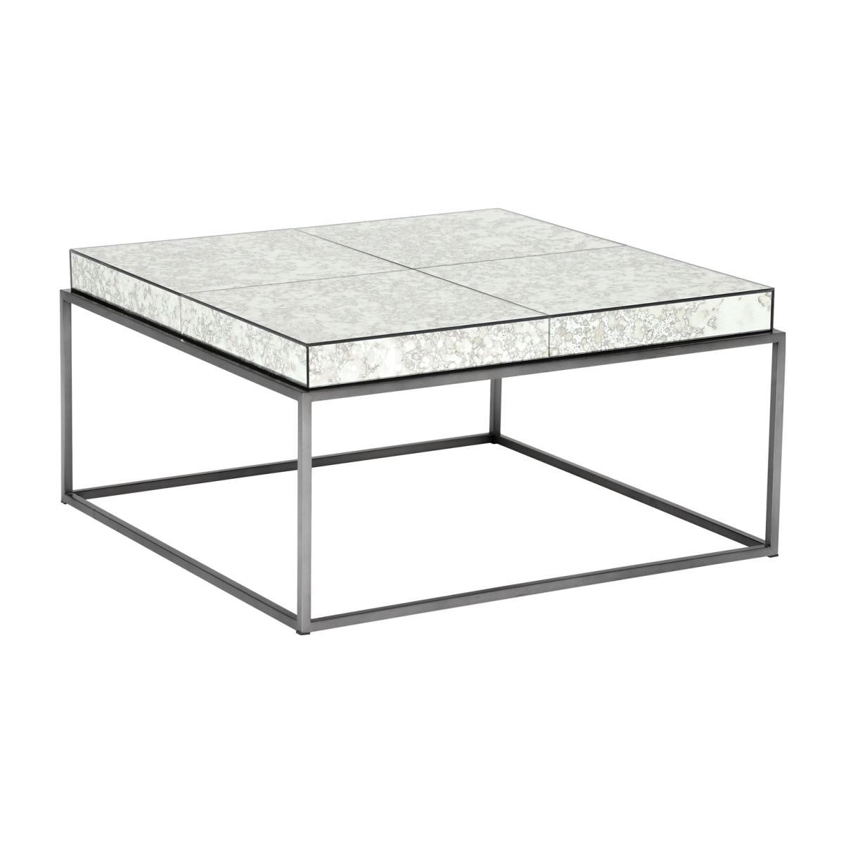 Design. A statement piece in its own right, the Rapson square coffee table features a unique mirrored table top in quarters. Putting a vintage twist on contemporary style, the glass is finished with a gorgeous antique effect. Perfect for showing off a rug, the table’s raw iron frame is slim and open to make the most of surrounding space. So stunning, you may not want anything placed on top.