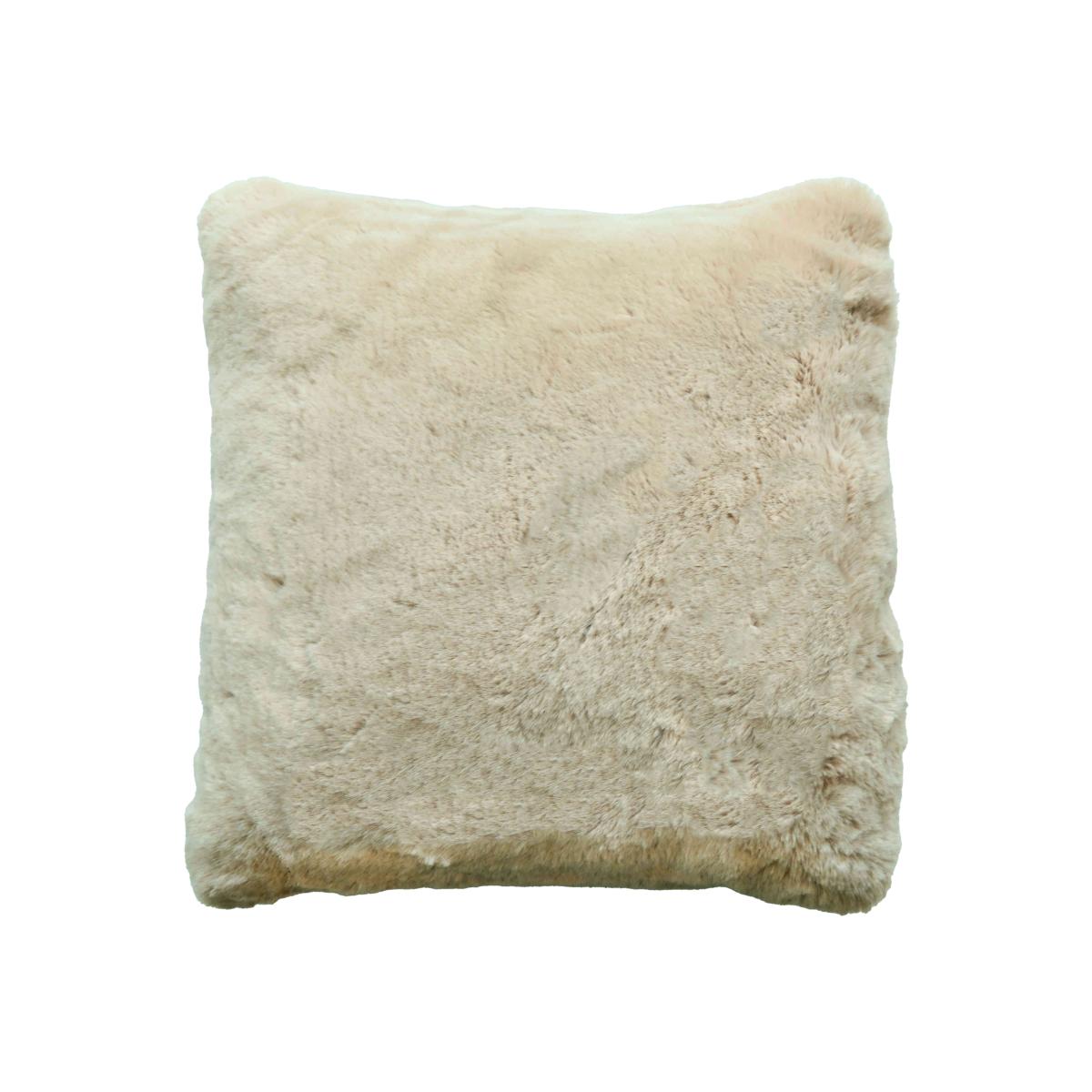 A luxuriously soft faux rabbit fur cushion that brings a touch of Scandi charm to any space. Its generous 100% feather fillings keeps you comfy too. Why you'll love it A Scandi-inspired faux rabbit fur cushion. 100% feather filling for extra softness. Makes any bed or sofa feel cosier. Available in beige and white. The perfect finishing touch for bedrooms or living rooms. What you need to know 100% polyester fabric. 100% feather filling. For indoor use only. Dry clean only. To keep plump, remove cover and plump cushion interior regularly. Dimensions Height: 50cm (20 in). Width: 50 cm (20 in).