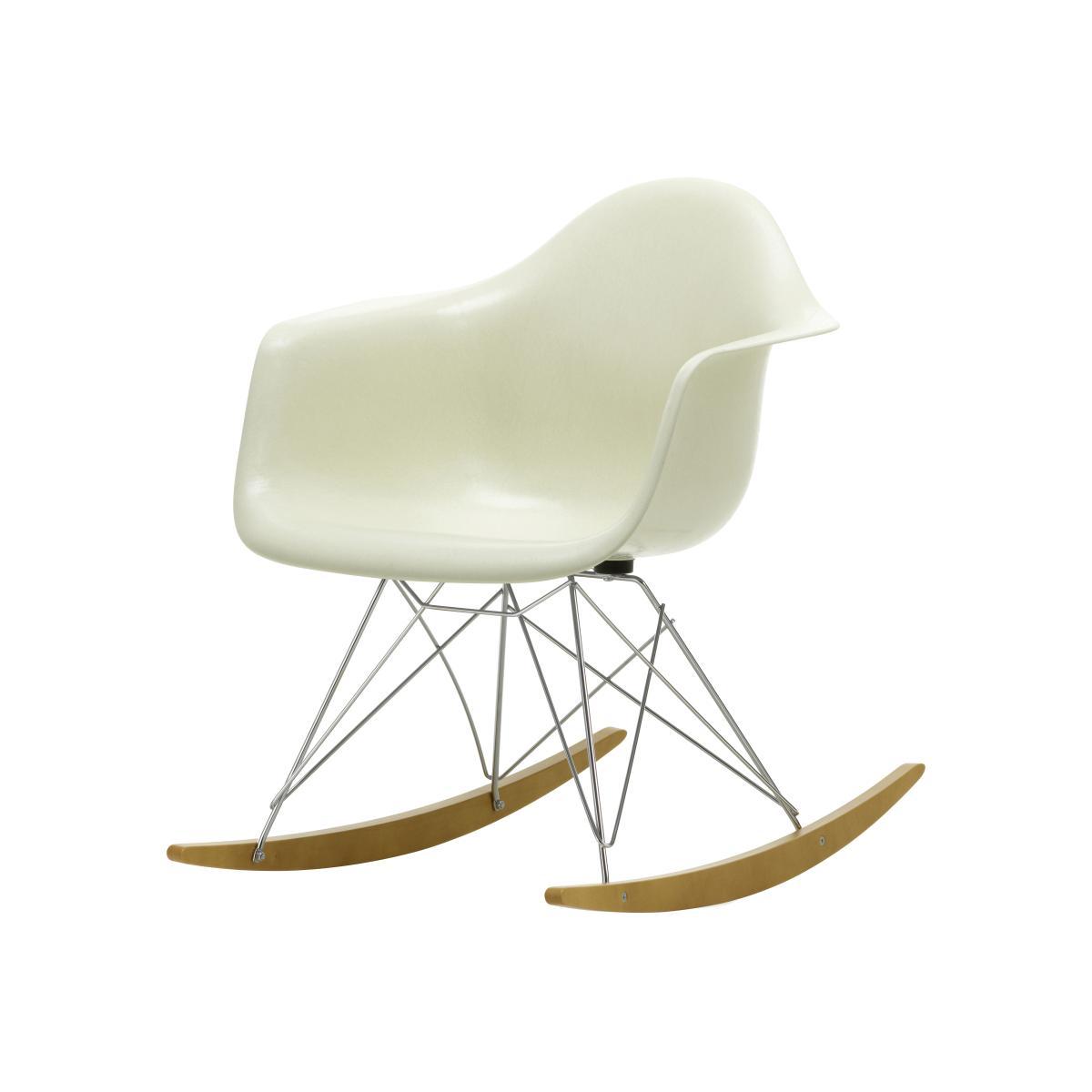 Treat yourself to an ORIGINAL iconic piece by Vitra. An original will always hold its value. It will stay with you for your whole life and outlast you, to be passed on to the next generation. Swiss design house Vitra is the only company authorised to manufacture Charles & Ray Eames products for Europe: if you own an Eames product manufactured by Vitra, you can be sure it’s an original. Charles and Ray Eames are two of the most important designers of the 20th century. The first plastic chairs to be mass-produced, the Shell Chairs by Charles and Ray Eames are among the major creations in the history of furniture. “Making the best available to the many" is how Charles and Ray Eames described one of their main aims as furniture designers. Of all their creations, none came closer to this goal than the Plastic Chairs. The idea of creating a one-piece moulded seat shell, adapted to the human body, was the focus of this pair of designers for many years. After experimenting with plywood and aluminium sheeting in the 1940s without producing satisfactory results, their search for alternative materials led them to glass-fibre-reinforced polyester resin. This material, which was completely unheard-of in the furniture industry at the time, allowed moulded shells to be developed and refined up to mass production. This one-piece, organically shaped shell turned out to be a much-admired innovation at a time when chairs were, for the most part, composed of a seat and a back. Fibreglass offered the added benefit of a pleasant feel and a perfectly moulded shell for extraordinary comfort. After their initial presentation at the Low Cost Furniture Design competition organised by the Museum of Modern Art in 1948, the Plastic Armchair (A-shell) and Plastic Side Chair (S-shell) were introduced to the market in 1950, as the first mass-produced plastic chairs. With the launch of this revolutionary creation, Charles and Ray Eames introduced a new type of furniture that has since spread around the world: the multifunctional chair whose shell can be combined with a wide variety of different bases. As early as 1950, Charles and Ray Eames presented a whole series of different bases with a remarkable design such as the Eiffel Tower base - a filigree steel wire structure with an unparalleled combination of lightness in its form and stability in its structure. One model has always stood out from the vast family of chairs: the Rocking Armchair Rod Base (RAR). Despite its compact dimensions, this rocking chair offers pleasant comfort even for tall users. With a steel wire base on wooden rockers, the Fiberglass Chair RAR is an armchair with an iconic shape that’s immediately recognisable. Today, Vitra manufactures RAR armchairs with two different shells: the Eames Plastic Chairs have a polypropylene shell while Eames Fiberglass Chairs have a glass-fibre-reinforced polyester resin shell just like the first models. Like the original armchair, this fibreglass version has a lively texture: the slightly irregular surface material has clearly visible fibres that give it an almost natural look. Due to the high quality of Vitra originals, the manufacturer offers a 10-year guarantee (register your product on the dedicated website to benefit from the extended warranty).
