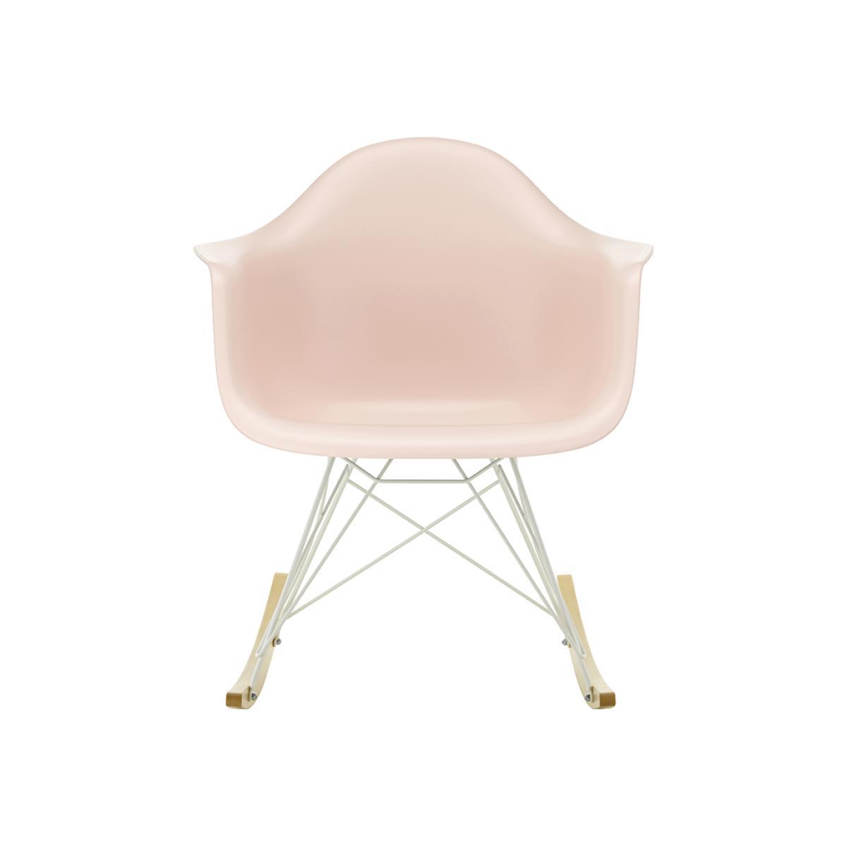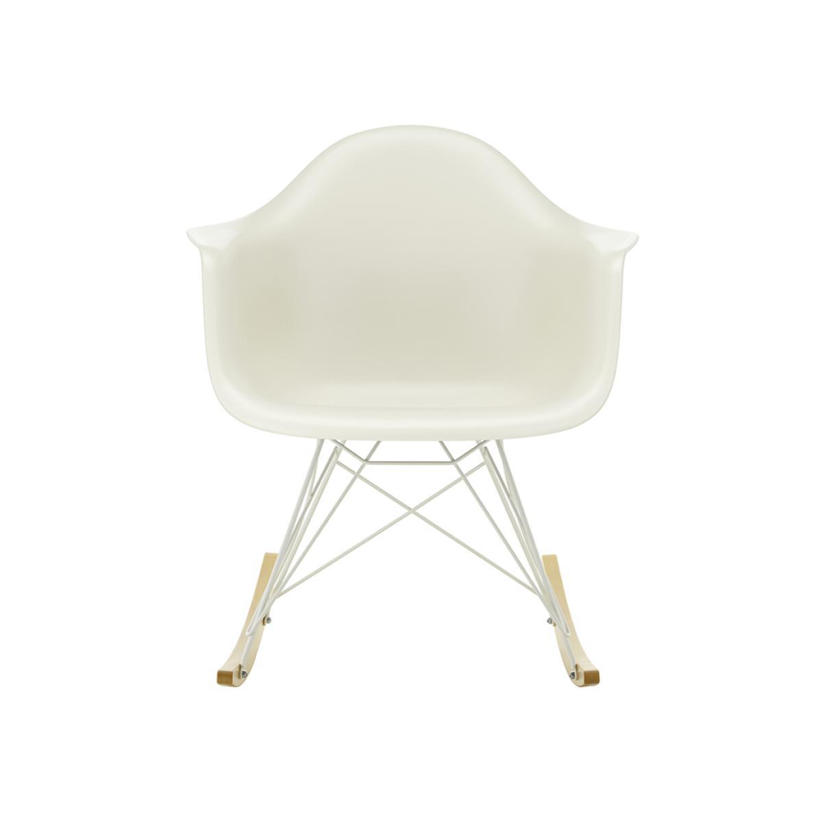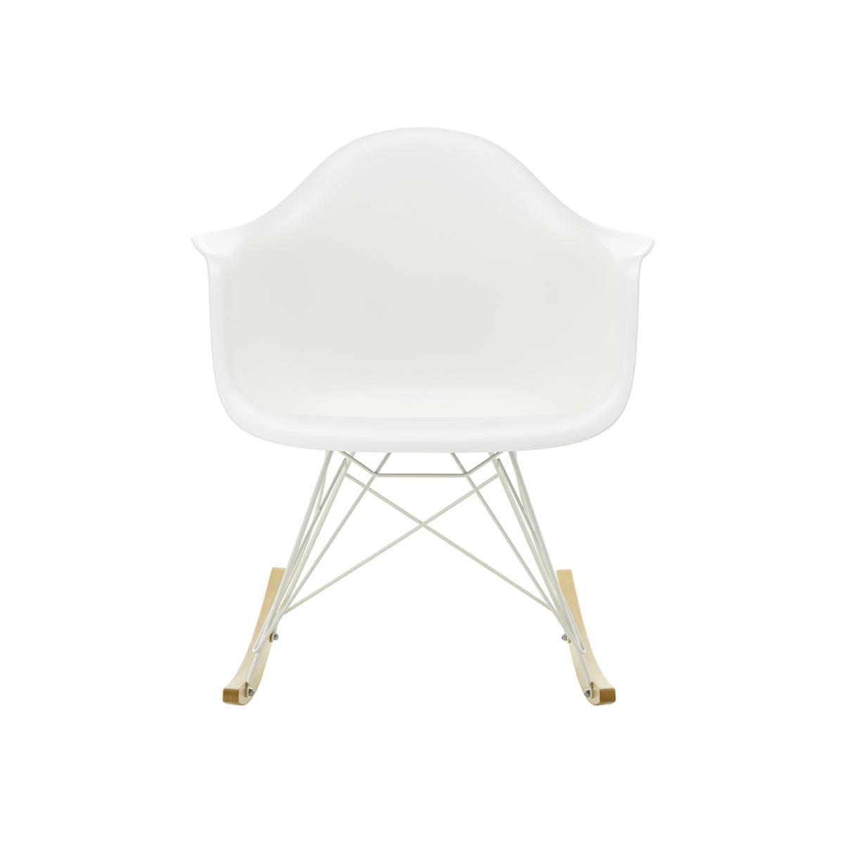 The rocking RAR Plastic Armchair by Charles and Ray Eames for Vitra is an enduring symbol of relaxation, refreshed with white powder coating for 2020.An instantly recognisable piece, the armchair features a recyclable dyed-through polypropylene shell for greater comfort, seated on a wire base with maple runners to offer the traditional delights of a rocker. Unveiled in the 1950s, the chair's organic shape led to its legendary status and universal appeal. Manufactured to exacting standards by Vitra, the prestigious collective curates innovative products and concepts, working with visionary designers to improve quality of life through the power of design.