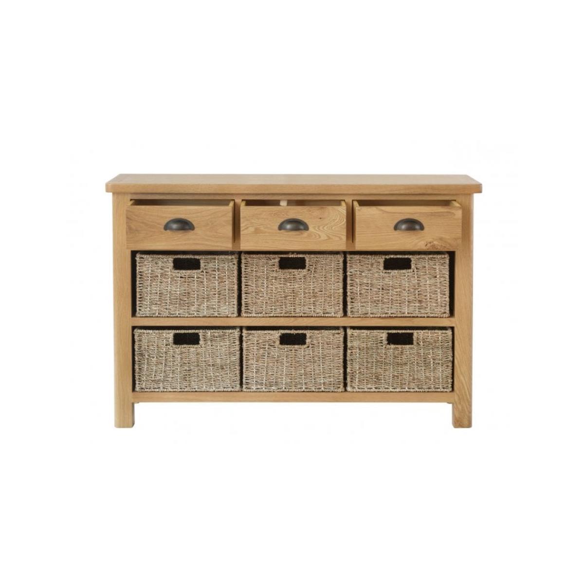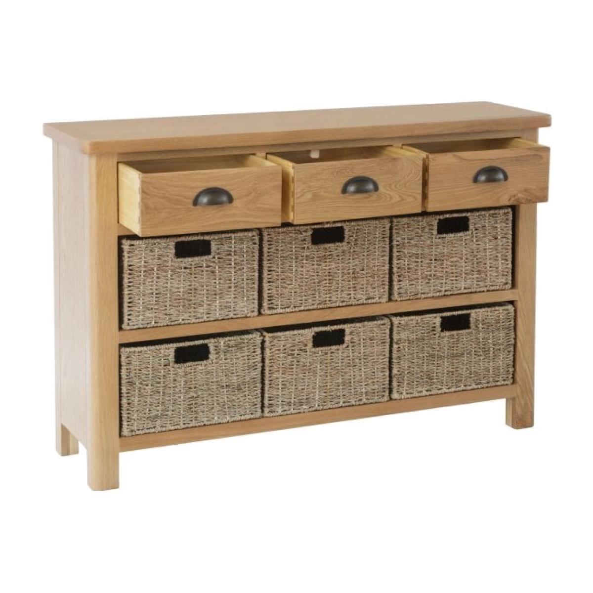 I love this piece for its practicality and warm, rustic charm. The Rara Oak unit is versatile and works well in both traditional and contemporary interiors, especially in living rooms, bedrooms, or even hallways where storage is key. Its combination of drawers and woven baskets provides flexible organisation options, keeping clutter out of sight while maintaining a natural aesthetic. For styling tips, consider using the top surface to display plants, books, or decorative accents, while the baskets can be perfect for organising everyday items or textiles. Pairing it with other natural materials like linen, jute, or wooden accessories will enhance its rustic appeal and create a cohesive, inviting space.