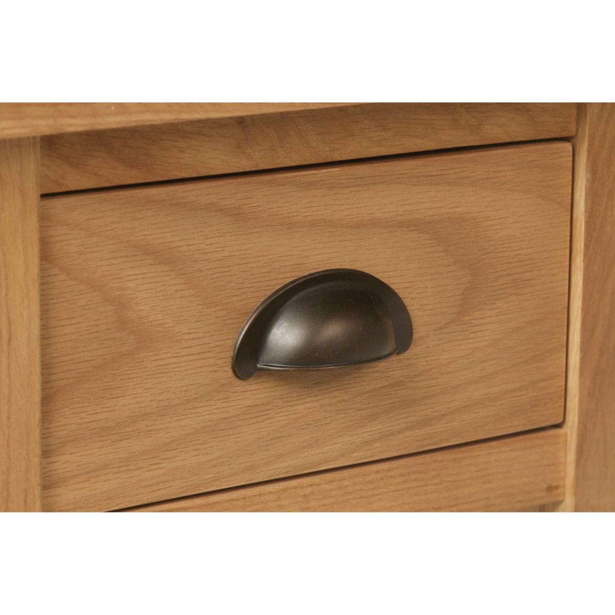 I love this little oak table for its versatility and natural charm. It works particularly well in rustic, Scandinavian, or farmhouse interiors, where its warm oak finish adds a cosy, organic touch. It's practical too - the drawer provides useful storage for remote controls or magazines, while the lower shelf makes for easy styling with books or small decorative pieces. When styling, consider pairing it with neutral-toned textiles or greenery to emphasise its understated elegance. Its compact size makes it ideal next to a sofa or armchair, easily elevating the space without overpowering it.